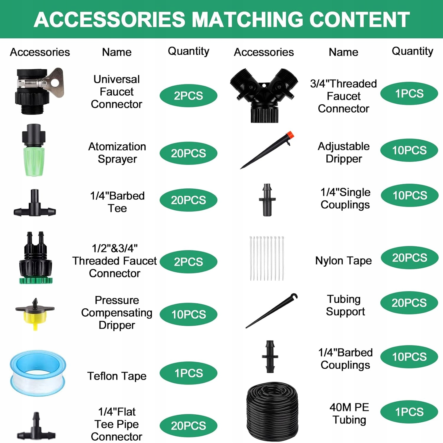 В наборе 147 элементов, включая 40 метров капельного шланга, капельницы, микроразбрызгиватели и необходимые соединители - все необходимое для создания эффективной системы полива.