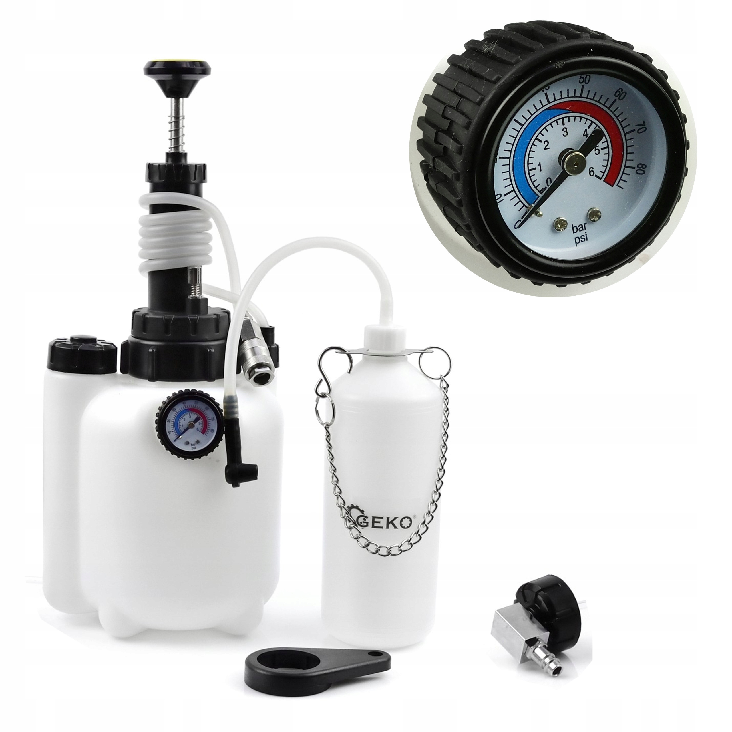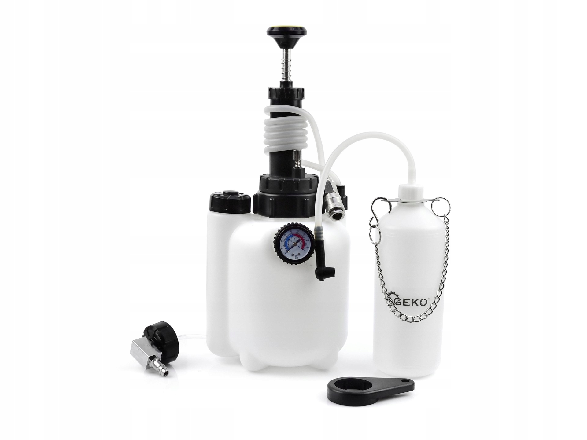 Комплект для прокачки и замены тормозной жидкости позволяет быстро и легко выполнить работу, которую может выполнить один человек, используя сжатый воздух со стандартным давлением 90–120 фунтов на квадратный дюйм. Это позволяет выполнять быструю, чистую и эффективную работу, не требующую другого специализированного оборудования. Позволяет слить жидкость через штуцер или заменить жидкость полностью. Устройство оснащено кабелем длиной 2 м с универсальным сменным наконечником.