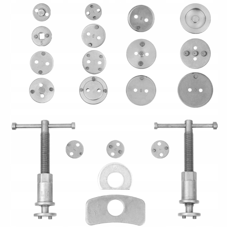 21 шт. оснащен дисковыми тормозами. Ручка оснащена магнитным наконечником, благодаря которой она поддерживает тарелку, которая соответствует данному поршню на оси. Набор предназначен для каждого автомобильного семинара, где он помогает ускорить обслуживание тормозных систем