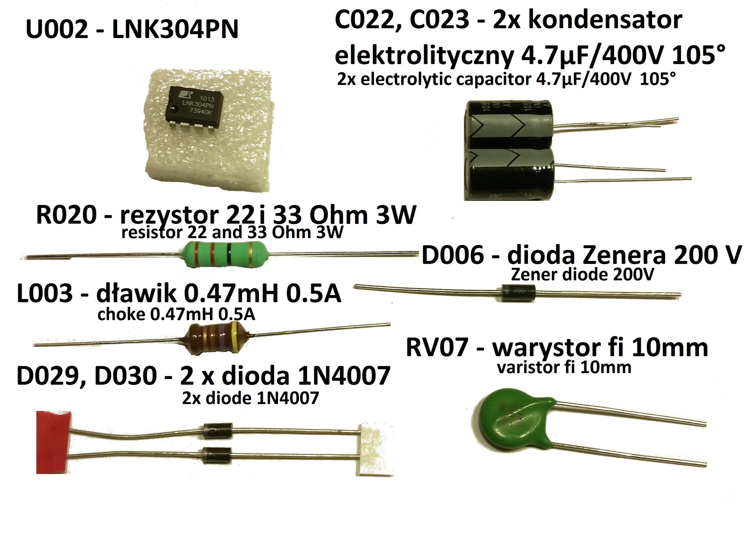 В этих стиральных машинах часто повреждаются преобразователь, система LNK304, резистор R020 22Ом (или 33Ом) и дроссель L003 0,47мГн (470мкГн). Благодаря моему ремкомплекту вы сэкономите на обслуживании несколько сотен злотых!