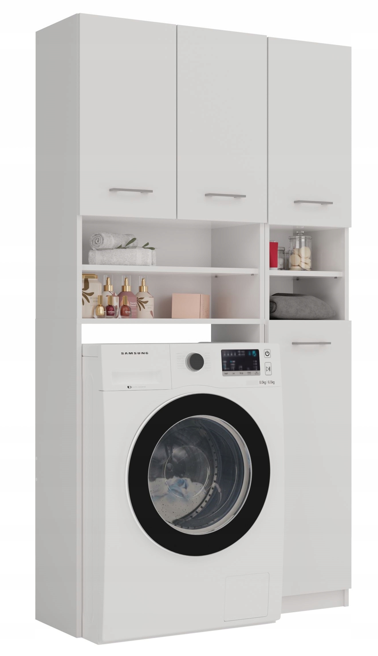 - Шкафчик над стиральной машиной с короткими дверцами