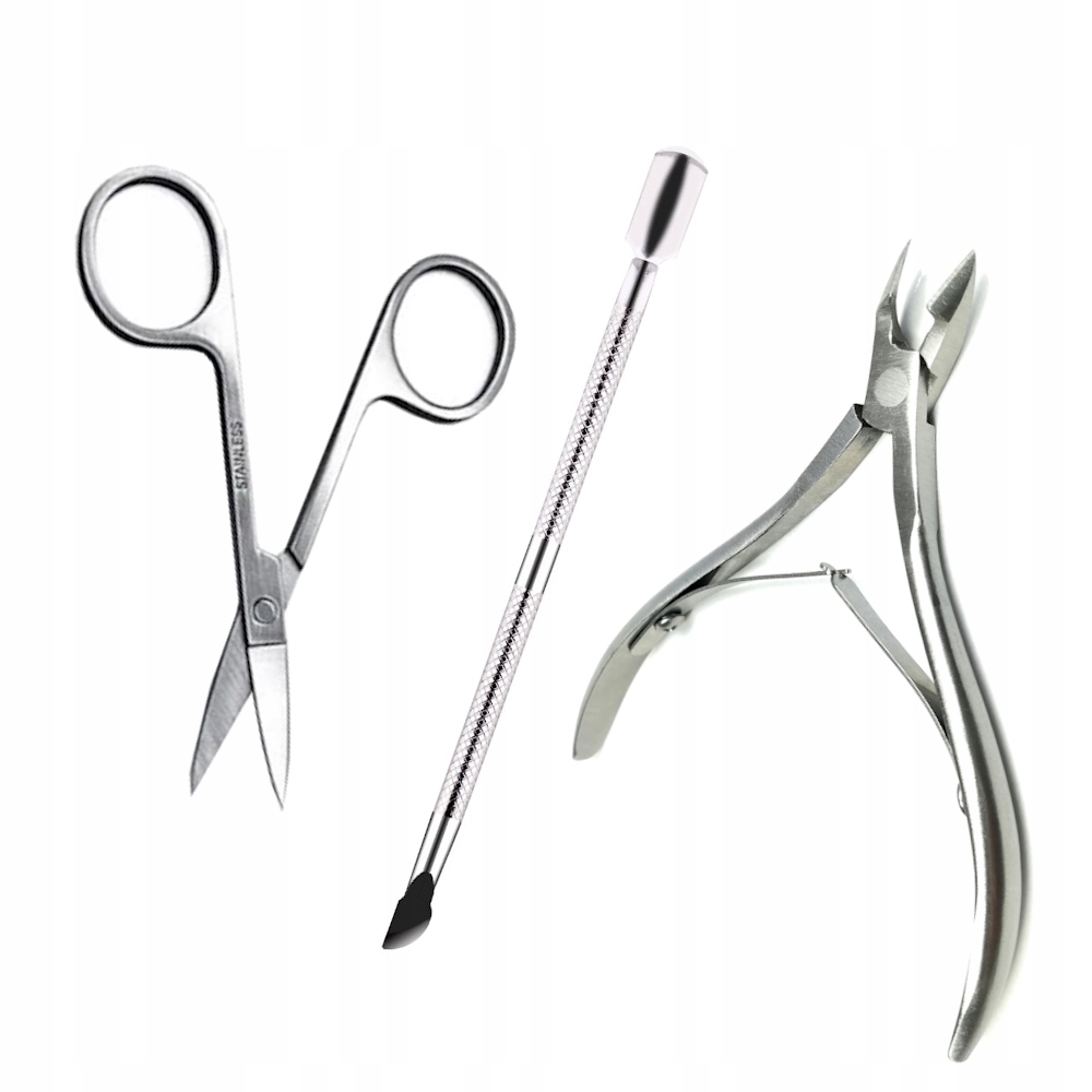 Набор, необходимый для ухода за кутикулой ногтей, состоящий из: накатки, кусачек и ножниц.