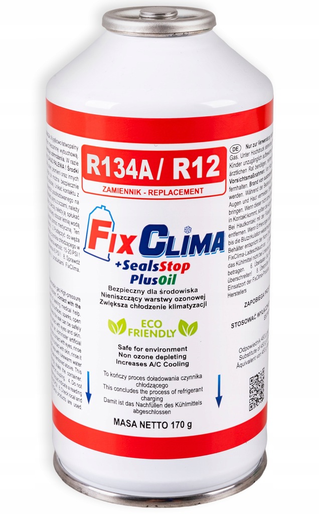 В одной банке содержится 170 граммов хладагент FixClima, что соответствует 453 граммам предыдущего хладагента R134a.