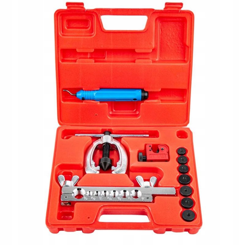Набор из 11 элементов с фрезой польского бренда Kraft&Dele незаменим в каждой мастерской – набор для резки алюминиевых и медных тормозных магистралей и изготовления конических соединительных фланцев.