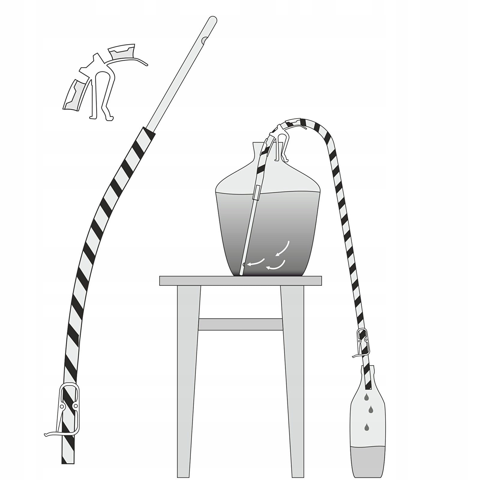Шланг с ручкой и зажимом, идеально подходит как для начинающих, так и для опытных виноделов. Наливать вино еще никогда не было так просто! Благодаря шлангу вы сможете удобно и легко переливать напиток из одной емкости в другую, не беспокоясь об удалении осадка со дна баллона. Гибкий шланг диаметром 8 мм в сочетании со стеклянной трубкой с входным отверстием на несколько сантиметров выше его ножки позволит легко и быстро разливать напитки, не беспокоясь о вытягивании осадка со дна баллона или бродильной емкости. Комплект дополнительно оснащен пластиковым хомутом, облегчающим контроль скорости наливания жидкости, и ручкой, предотвращающей перекручивание шланга. Благодаря его использованию вы стабилизируете шланг и удержите его на выбранном уровне! Выбрав этот продукт, вы можете гарантировать комфортную откачку жидкости в любых условиях – в том числе и на большие расстояния, ведь длина шланга достигает 2 метров!