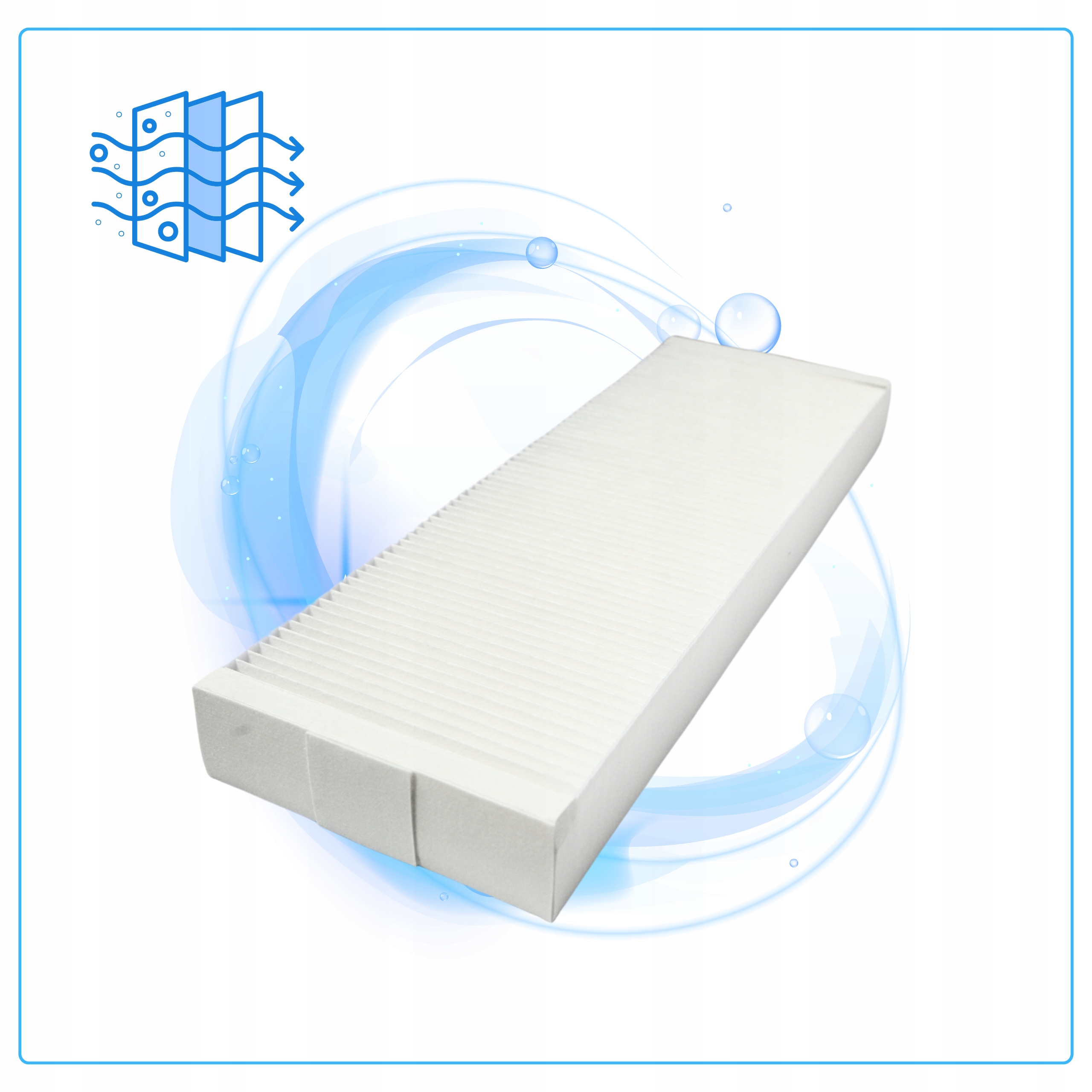 Синтетическая ткань, используемая в фильтре, устойчива к влаге, плесени и бактериям, что обеспечивает долговременную эффективность и гигиену.