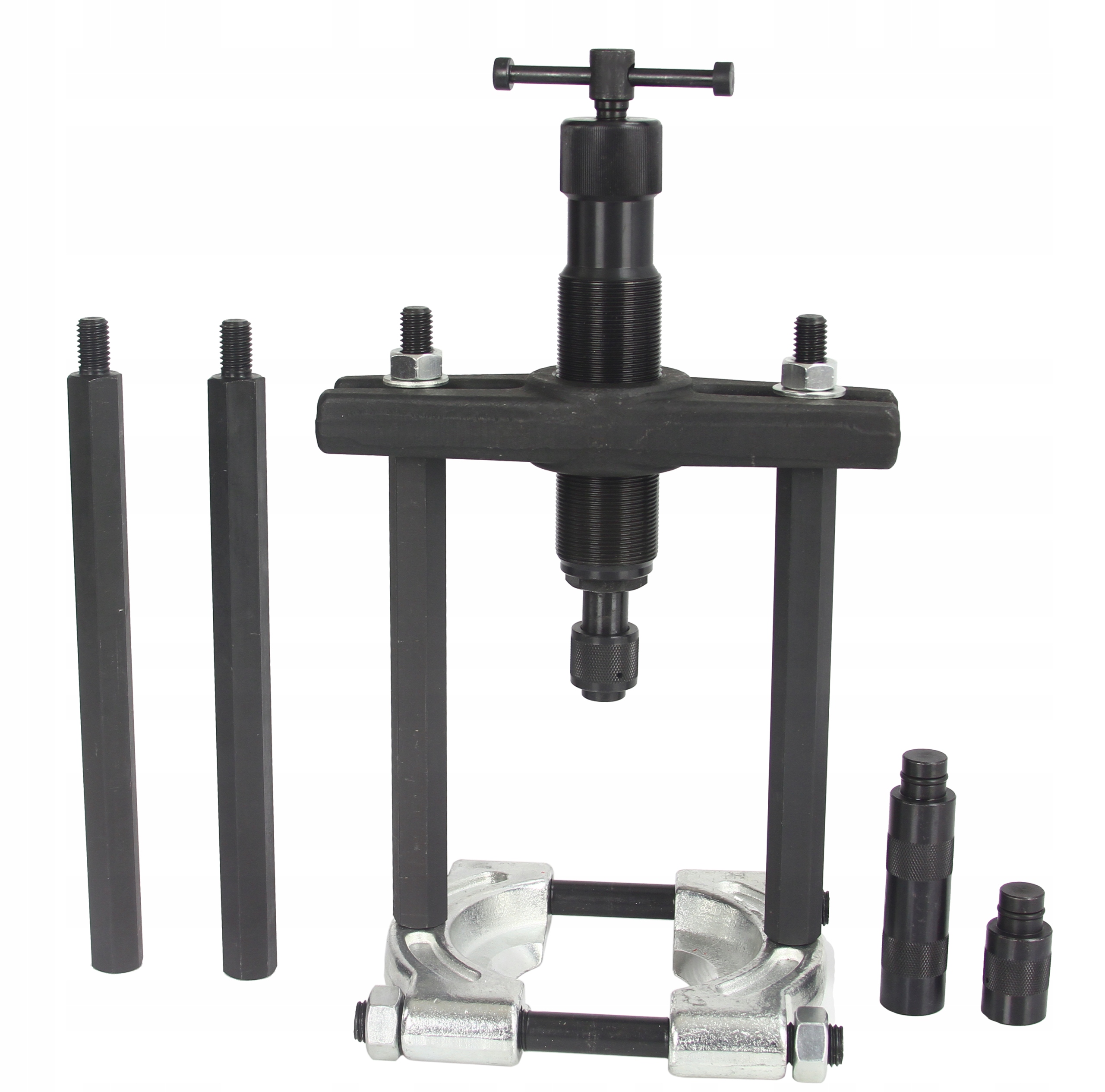 Универсальный съемник подходит для всех типов подшипников, дисков, шестерен и роторов. Комплект может работать как съемник с двумя или тремя захватами длиной 4, 6 или 8 дюймов и в широком диапазоне размеров. Привод, входящий в комплект, является независимым и не требует внешнего насоса.