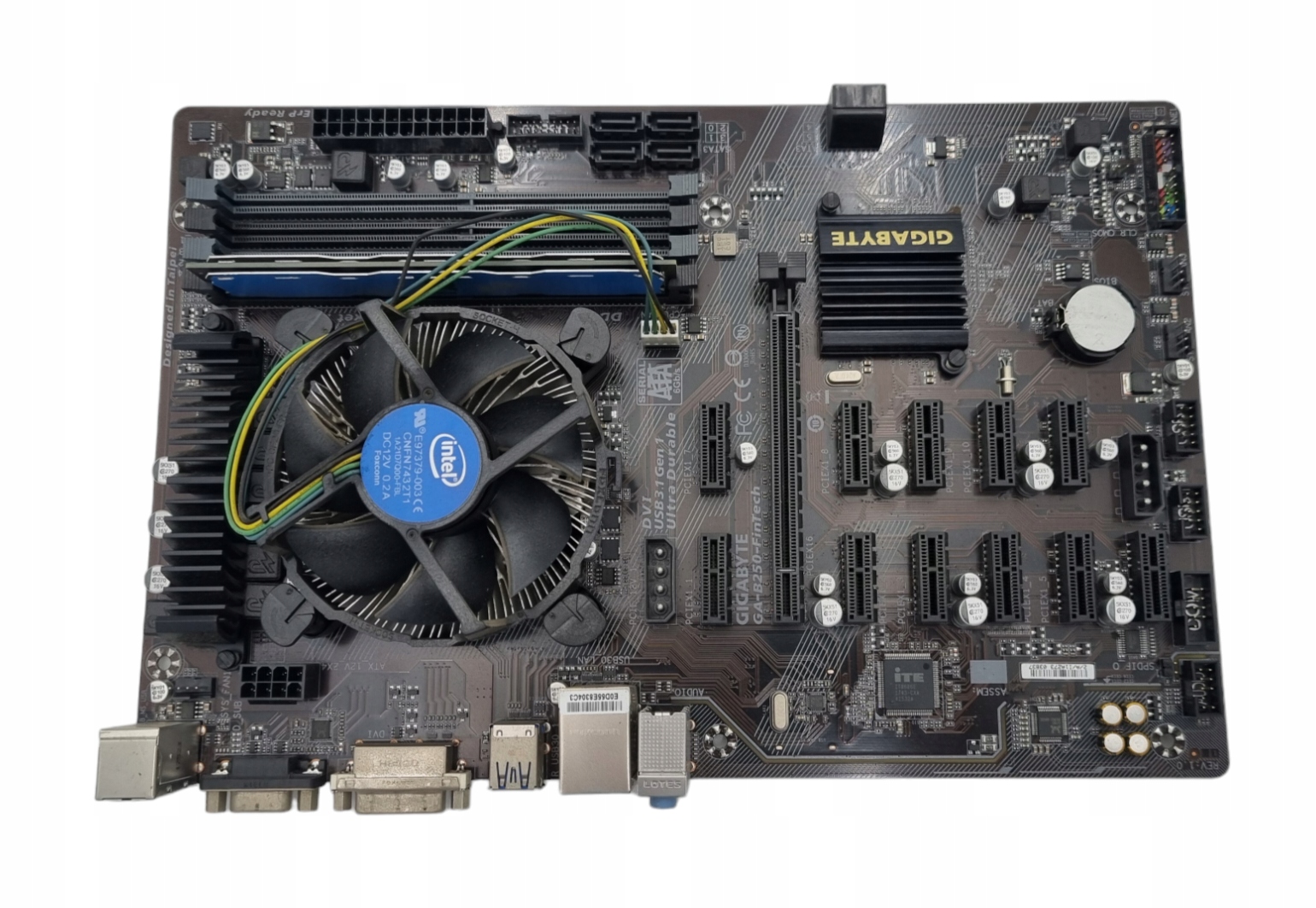 Эта специализированная материнская плата оправдает ожидания всех любителей майнинга криптовалюты, таких как: Биткойн. На базе Gigabyte GA-B250-FinTech вы легко сможете создать эффективный экскаватор, сведя при этом свои затраты к минимуму. Помимо 12 разъемов PCIe, материнская плата имеет разъем 1151 для установки процессоров Intel 6-го и 7-го поколения, 4 слота для оперативной памяти, видеопорты VGA и DVI, а также полезные порты SATA III, USB 3.1 Gen1 и GbE Ethernet LAN. р >
