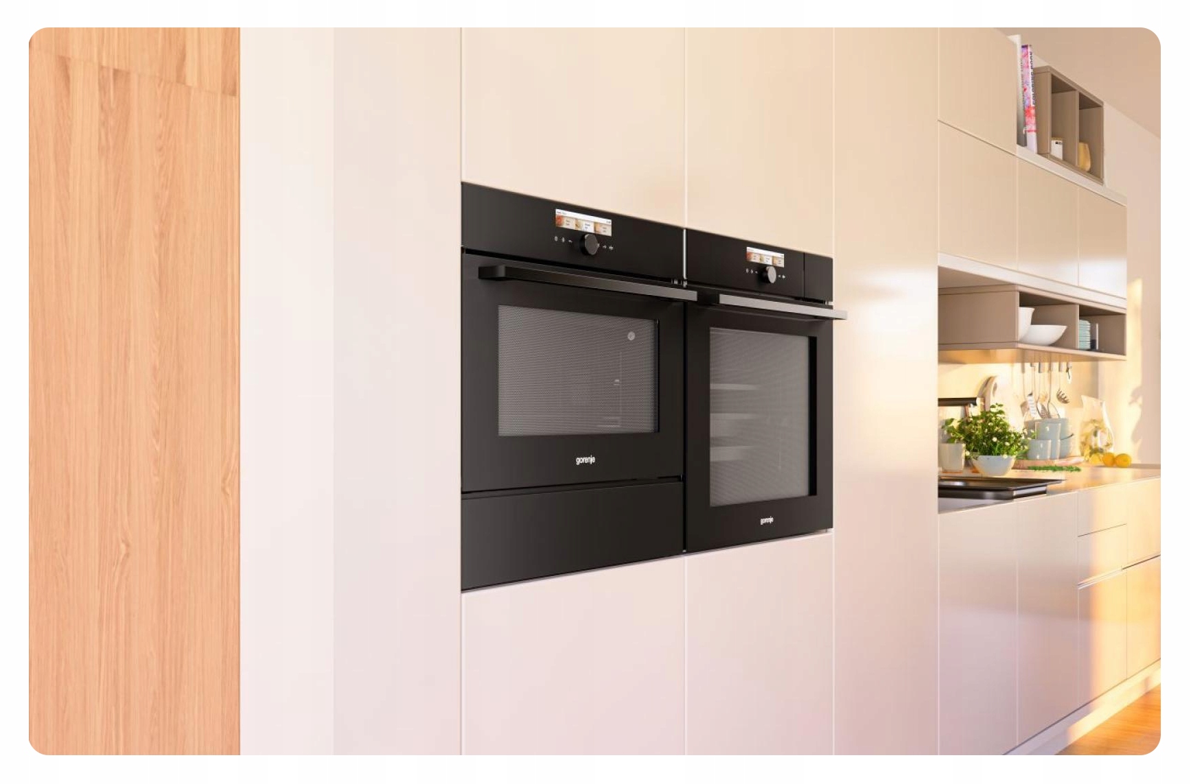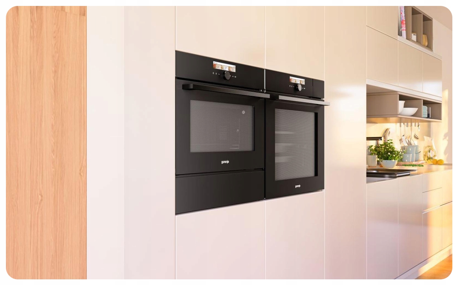 Больше свободы приготовления благодаря большему пространству. Новое поколение духовых шкафов Gorenje отличается особой, закругленной формой верхней части. Такое решение делает внутреннее пространство духовки более просторным, что обеспечивает совершенно свободную и, следовательно, более эффективную циркуляцию горячего воздуха. Большая рабочая мощность духовки при неизменных внешних размерах устройства позволяет также использовать противни большего размера и готовить большие порции блюд. Духовки теперь предлагают возможность выпекания в пяти противнях вместо трех одновременно. Gorenje предлагает стандартные модели духовок объемом до 75 литров и модели микроволновых печей объемом до 53 литров. Это одни из самых больших объемов, доступных на рынке.