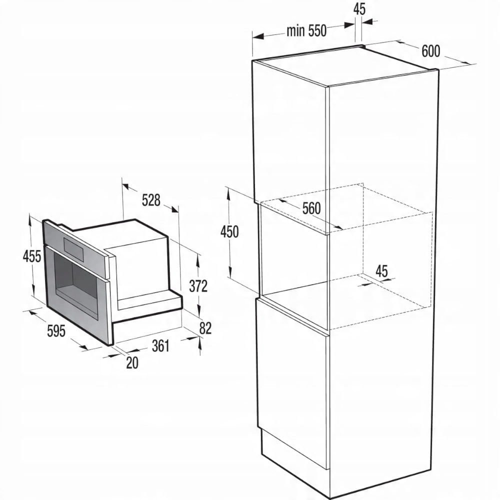 - Минимальная высота установочной ниши: 450 мм
