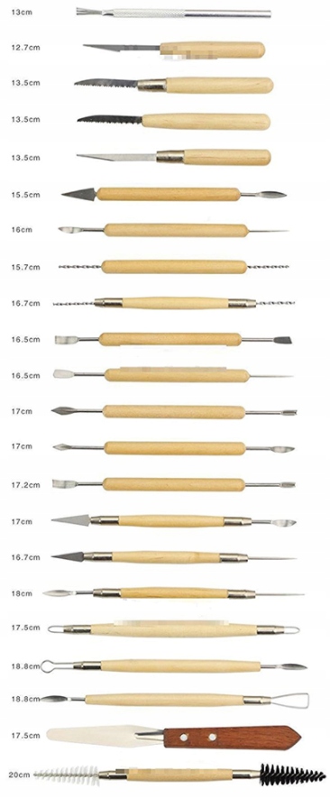 Оригинальный набор из 38 керамических инструментов для лепки и лепки из глины и других пластических материалов. Благодаря множеству и разнообразию инструментов набор идеально подходит для гравировки, формовки, резки, царапания, чистки или сглаживания моделируемой поверхности.
