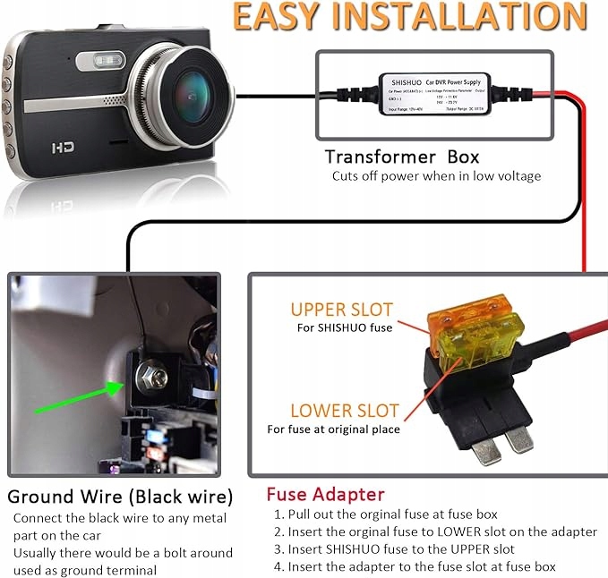 - 【24-ЧАСОВЫЙ МОНИТОР】Предоставьте парковочный монитор для видеорегистраторов (если ваше устройство поддерживает), который будет поддерживать питание видеорегистратора даже после выключения двигателя. Аккумуляторы автомобильной камеры имеют небольшую емкость, их необходимо постоянно подключать к автомобильному аккумулятору, если вы хотите использовать режимы парковки и обнаружения движения для защиты вашего автомобиля.
