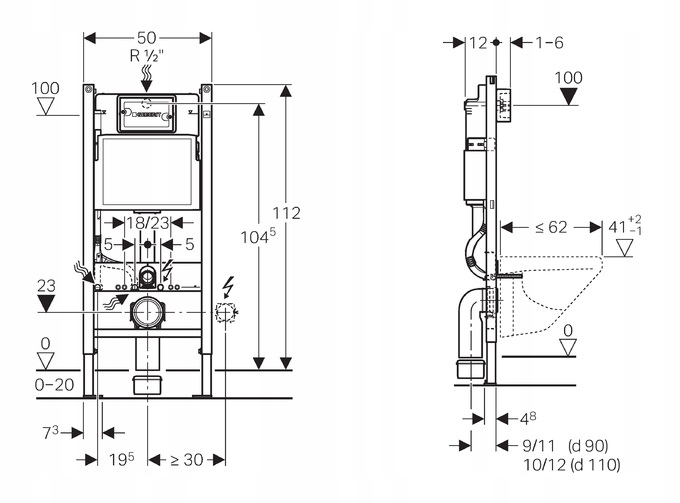- Для подвесных унитазов с присоединительными размерами согласно EN 33:2011.