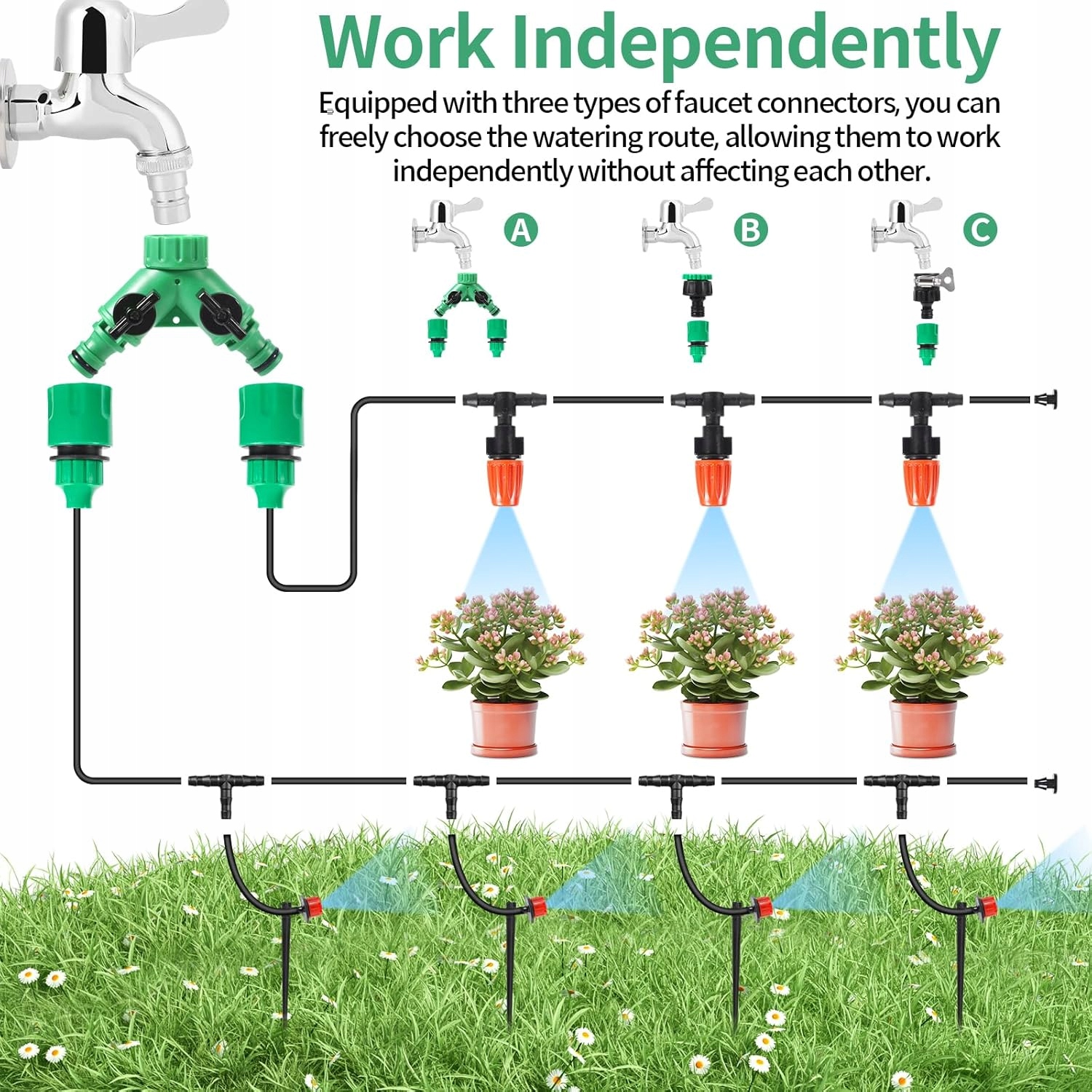 Каждый завод требует различного количества воды - благодаря регулируемым капельникам и соплам, вы можете точно контролировать количество поставляемой воды
