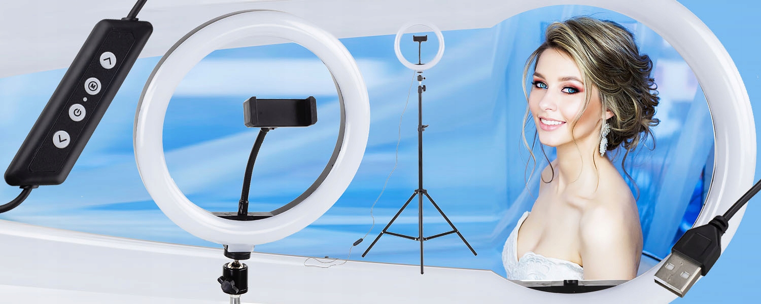 - Универсальная и яркаякольцевая лампа для освещения портретов, групповых фотографий, деталей макияжа, помещения, продуктов, идеальна для записи фильмов или прямых видеозвонков - мощность до 60Вт, средняя мощность 25, 5 см.
