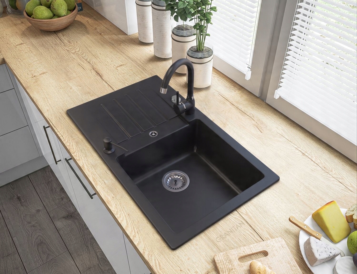 1️⃣TRIX ГРАНИТНАЯ МОЙКА ЧЕРНОГО ЦВЕТА С ХРОМИРОВАННЫМ СИФОНОМ