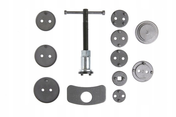 Профессиональный набор из 12 предметов для втягивания/сжатия поршней в цилиндрах тормозной системы, необходимый при ремонте автомобилей, оснащенных дисковыми тормозами.