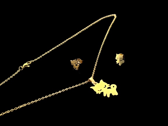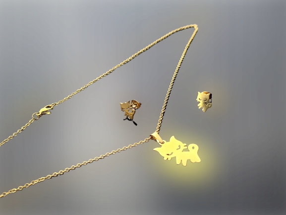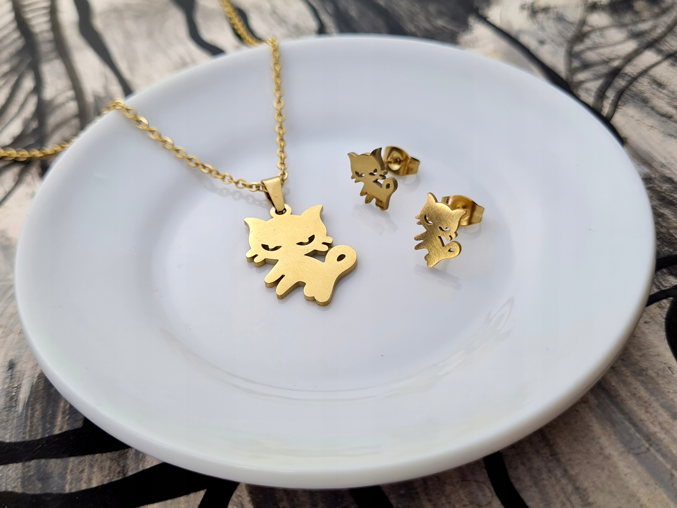 Комплект намиста та сережок «Кошеня-кішка», золото 316L