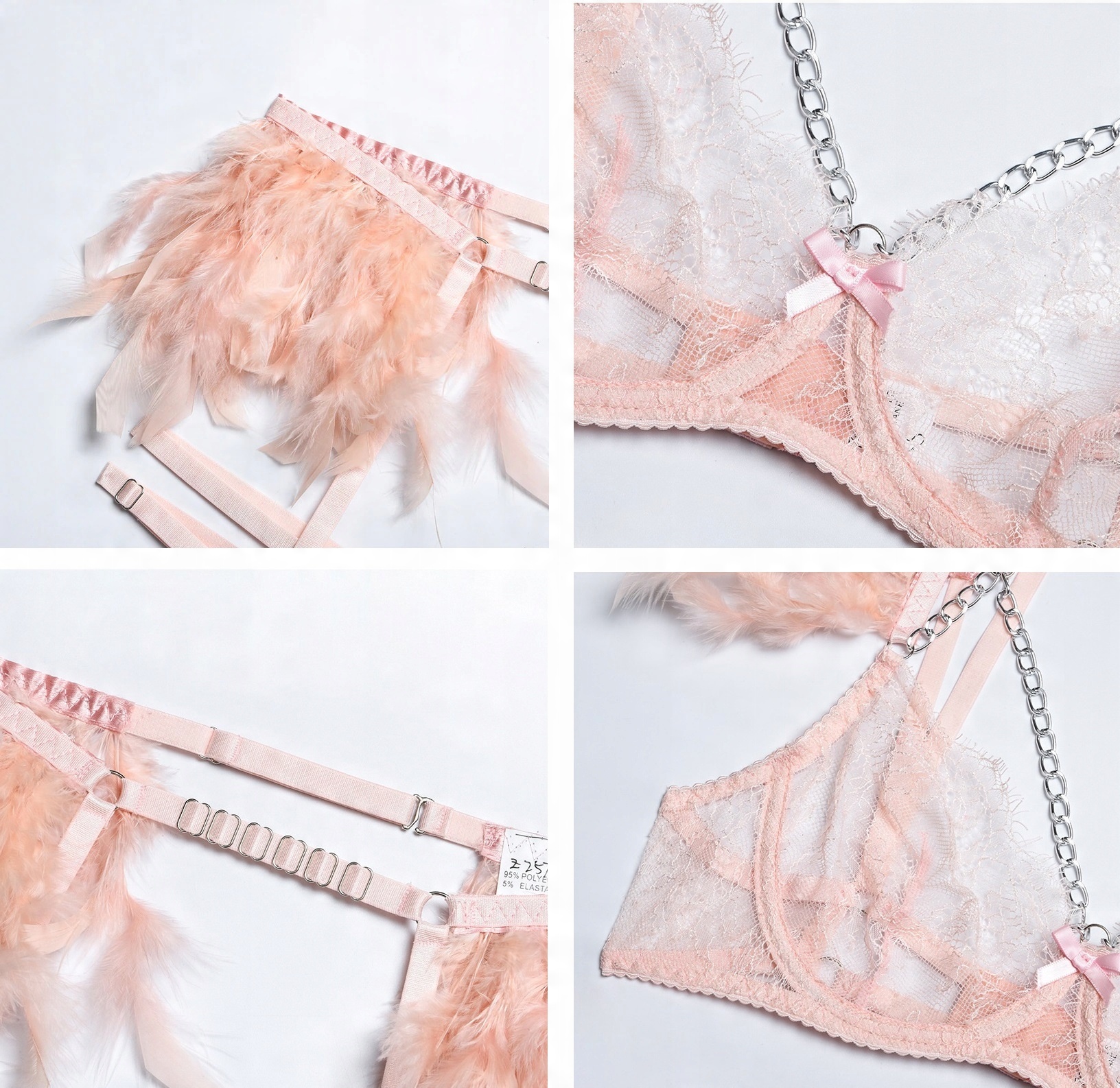 Элегантный комплект нижнего белья с перьями в винтажном стиле.