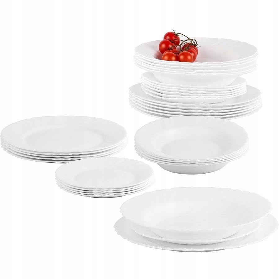 Хотите изменить свой стол и придать ему немного свежести? Представляем новинку в нашем магазине! Обеденный сервиз, состоящий из 12 глубоких тарелок, обеденных тарелок и десертных тарелок! Комплект Ebro Bormioli отличается классическими формами, которые в то же время удивляют элегантностью. В глаза бросается волнистый край тарелок. Не раздумывайте и купите этот набор уже сегодня!