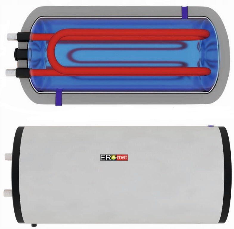 Горизонтальный теплообменник горячей воды с двойным змеевиком (2xU) представляет собой устройство, предназначенное для нагрева воды и поддержания ее горячей. Нагревательным элементом данной модели является змеевик, соединенный с печью центрального отопления и электронагревателем.
