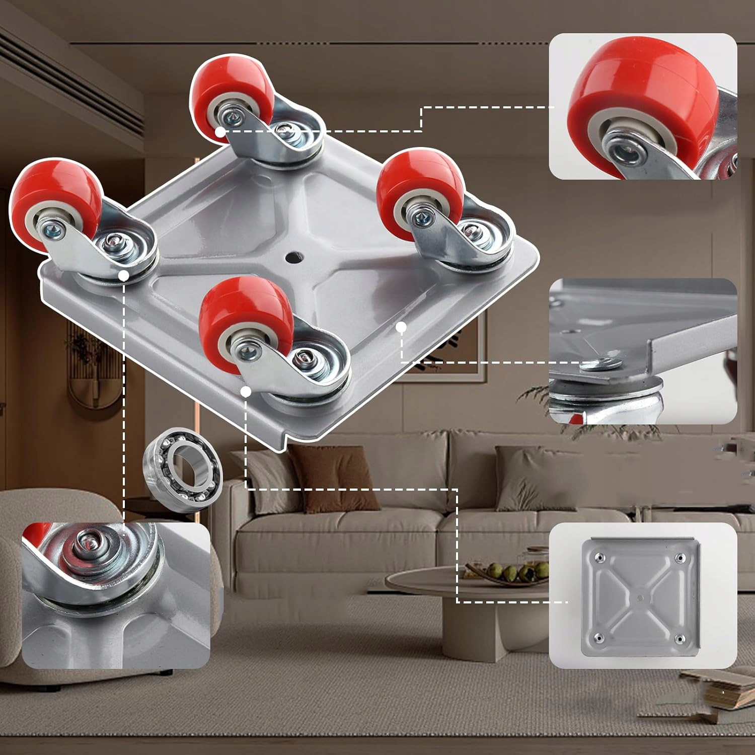 ❤️❤️ В колесном подъемнике для тяжелой мебели используется толстая стальная рама и двойные шарикоподшипники,обеспечивающие большую несущую способность, несущая способность 600КГ