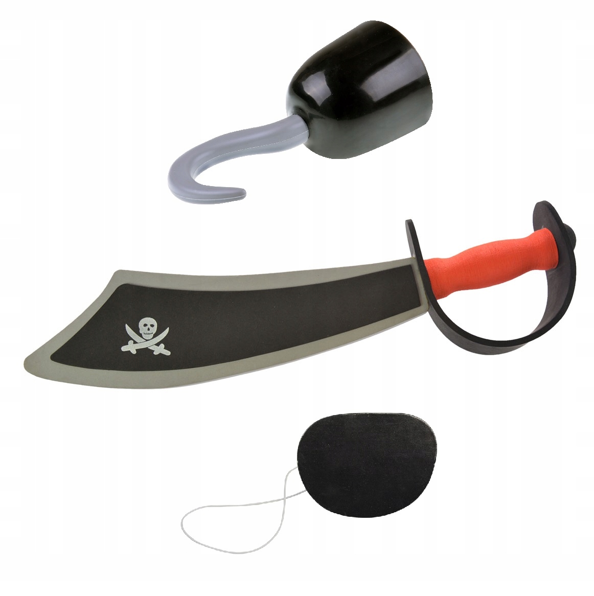 Меч из безопасного пенопласта, реалистичный крючок и повязка на глазу придадут костюму необыкновенный вид.