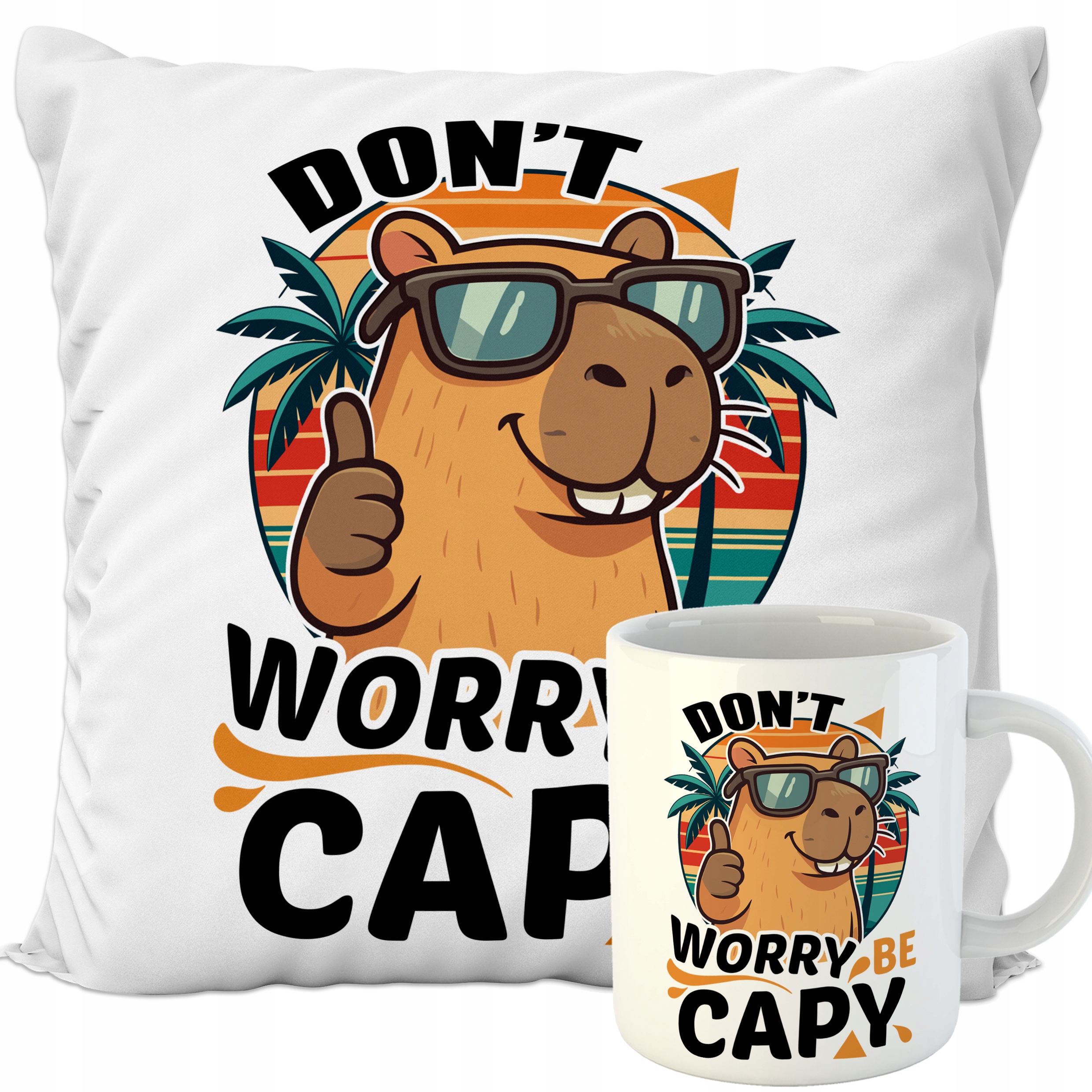 КОМПЛЕКТ ПОДУШКА + ЧАШКА КАПІБАРА З КАПІБАРОЮ Dont worry be Capy у подарунок