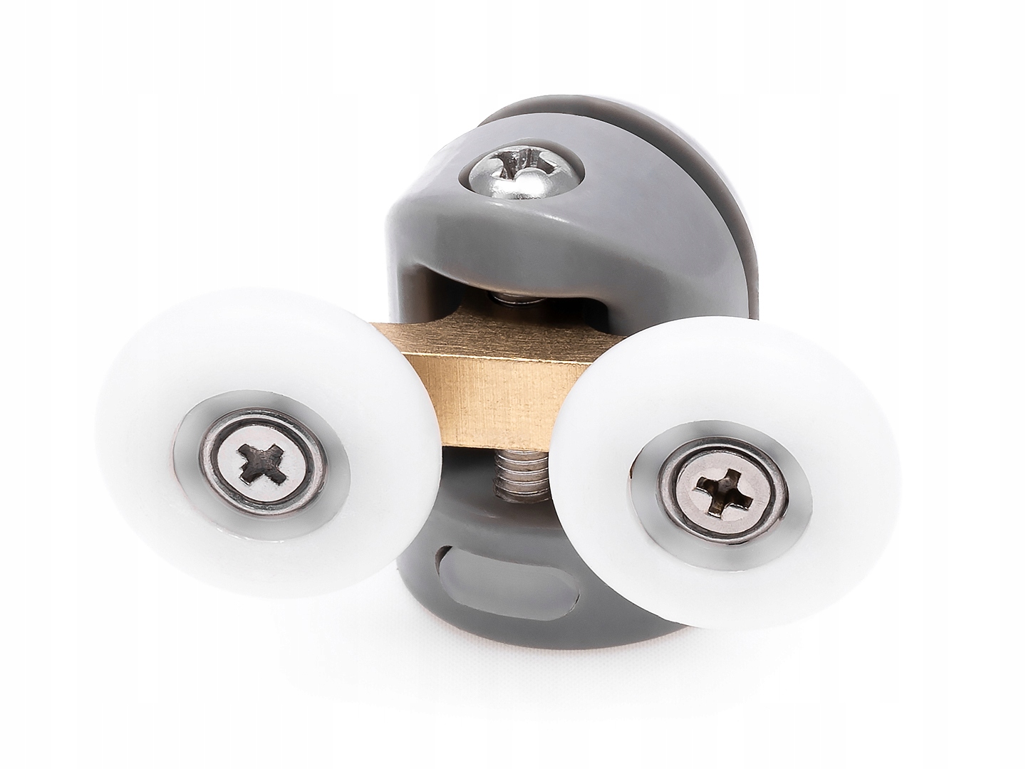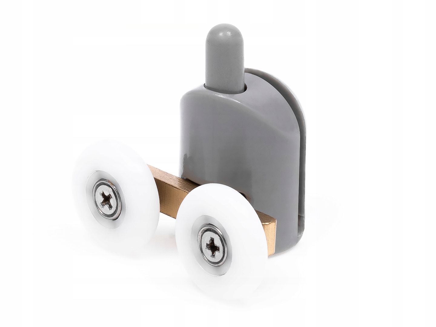 Положение ролика регулируется с помощью винта, который поднимает или опускает штифт, на котором установлено колесо. Штифт подвижный, поэтому данная модель ролика подойдет и для полукруглых кабин.