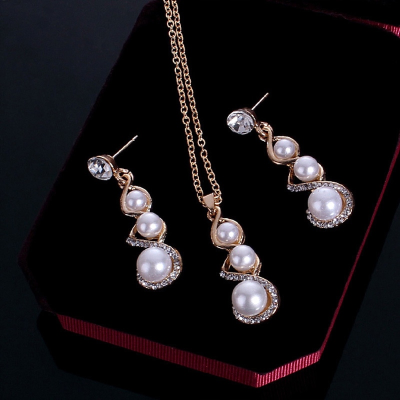 Комплект ювелирных изделий Серьги Ожерелье Цвет Золото Белый Жемчуг Цирконы Свадьба