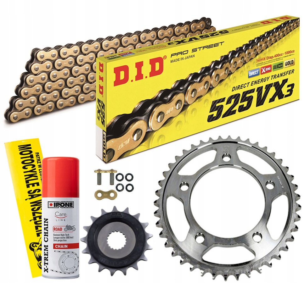 - Цепь: DID 525 VX3 118 G&B (колпачок в комплекте)