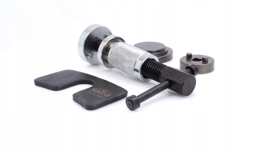 Комплект с прессом резьбовым - правым с 3 переходниками и нажимным диском, используемый для втягивания правых тормозных поршней на мотоциклах и легковых автомобилях.