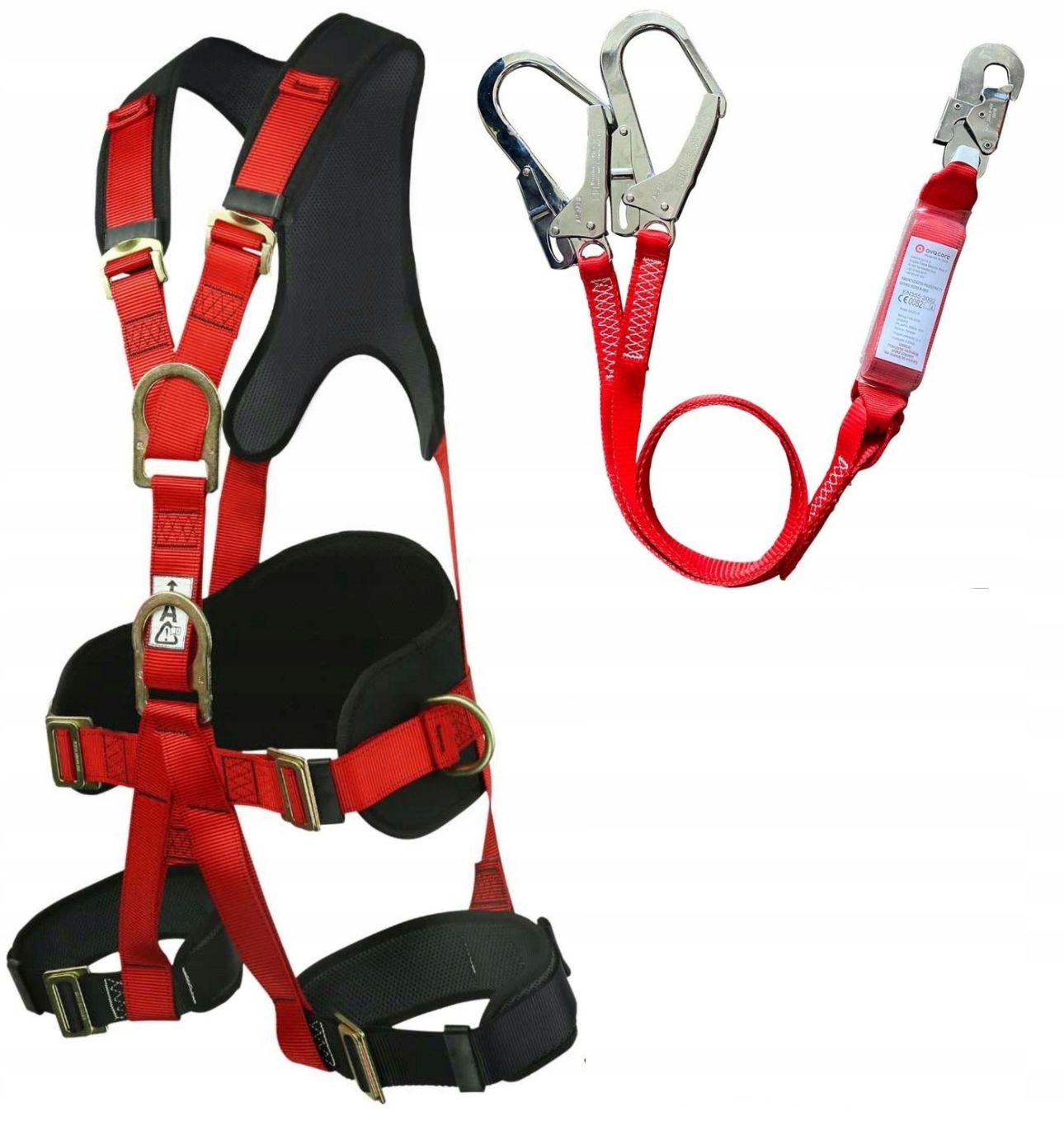 КОМПЛЕКТ РЕМНЕЙ БЕЗОПАСНОСТИ, РЕМНЯ ДЛЯ РАБОТЫ НА ВЫСОТЕ, ЗАЩИТА ОТ ПАДЕНИЯ С АМОРТИЗАТОРОМ GEKKO COMFORT AVACORE, Красный