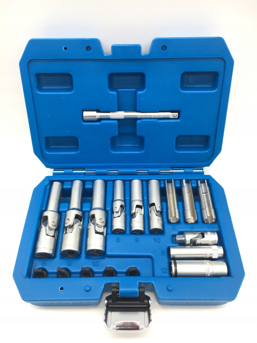 - Гнезда для свечей накаливания 3/8 "с шарниром: длина 72 мм, размеры: 8 - 9 - 10 мм