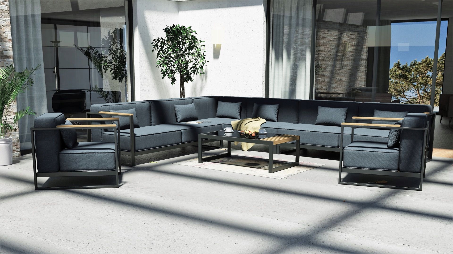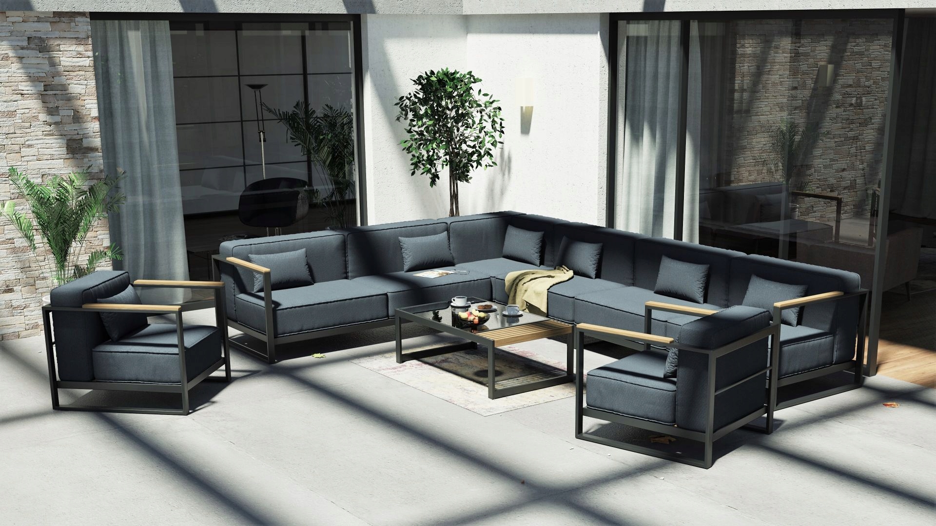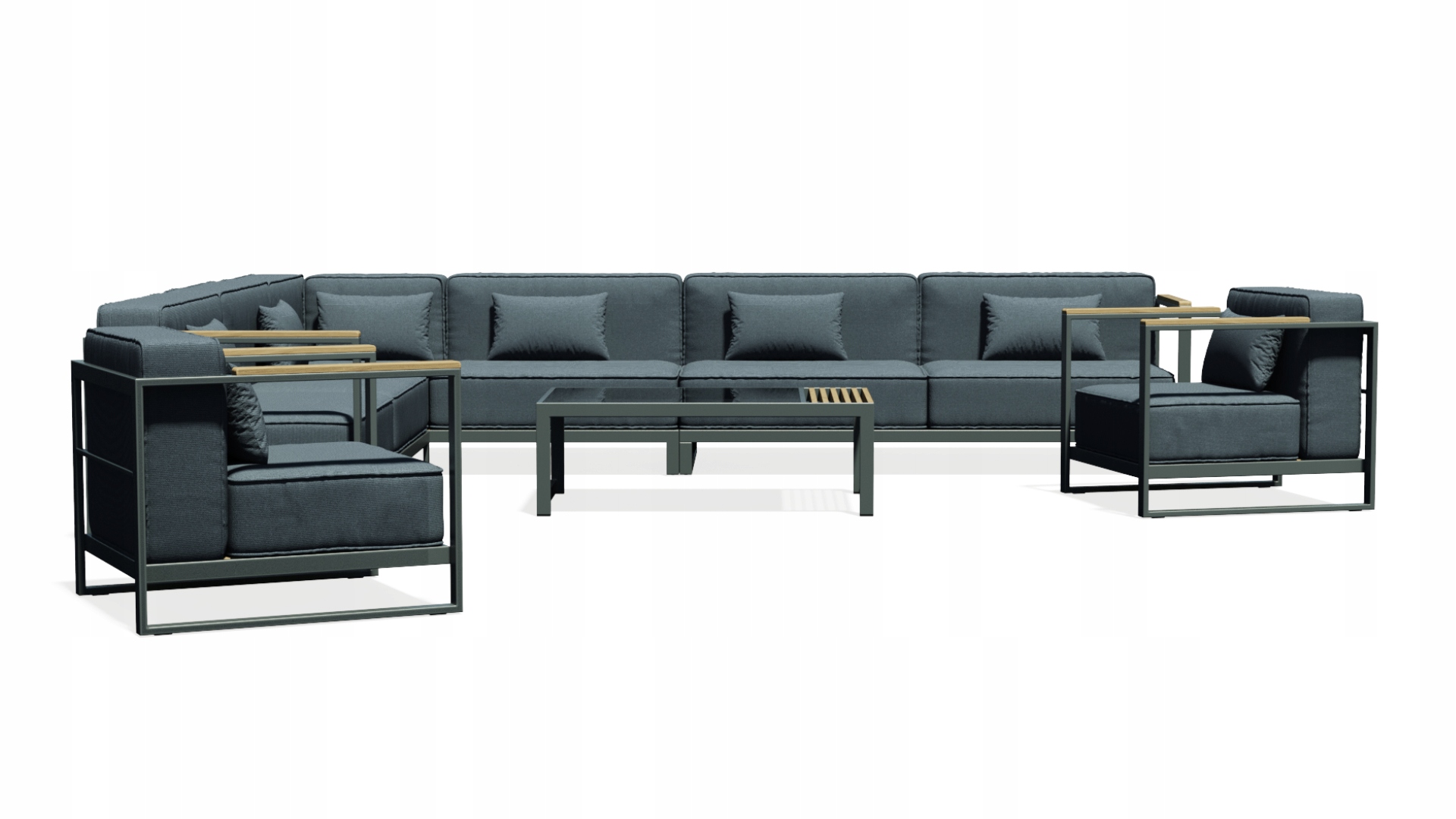 Садовая мебель Madera — это уникальный современный комплект премиум-класса красивого светло-серого цвета. Набор изготовлен из стали, которая защищена от атмосферных воздействий и механических повреждений порошковым покрытием. В комплект входят два дивана, один угловой диван, соединяющий диваны, два кресла, восемь подушек и красивый стол, представляющий собой сочетание металла, дерева и стекла. Набор рассчитан на 8-10 человек. Материалы, используемые в сиденьях и подушках, сертифицированы и обладают высокой устойчивостью к ультрафиолетовому излучению. Все выполнено из дуба класса А, защищенного от изменения погодных условий. Мебель изготавливается и собирается вручную в Польше из польских продуктов, с вниманием к деталям и отделке. Благодаря этому они обладают уникальным качеством и стилем, которые выделяют их среди других.