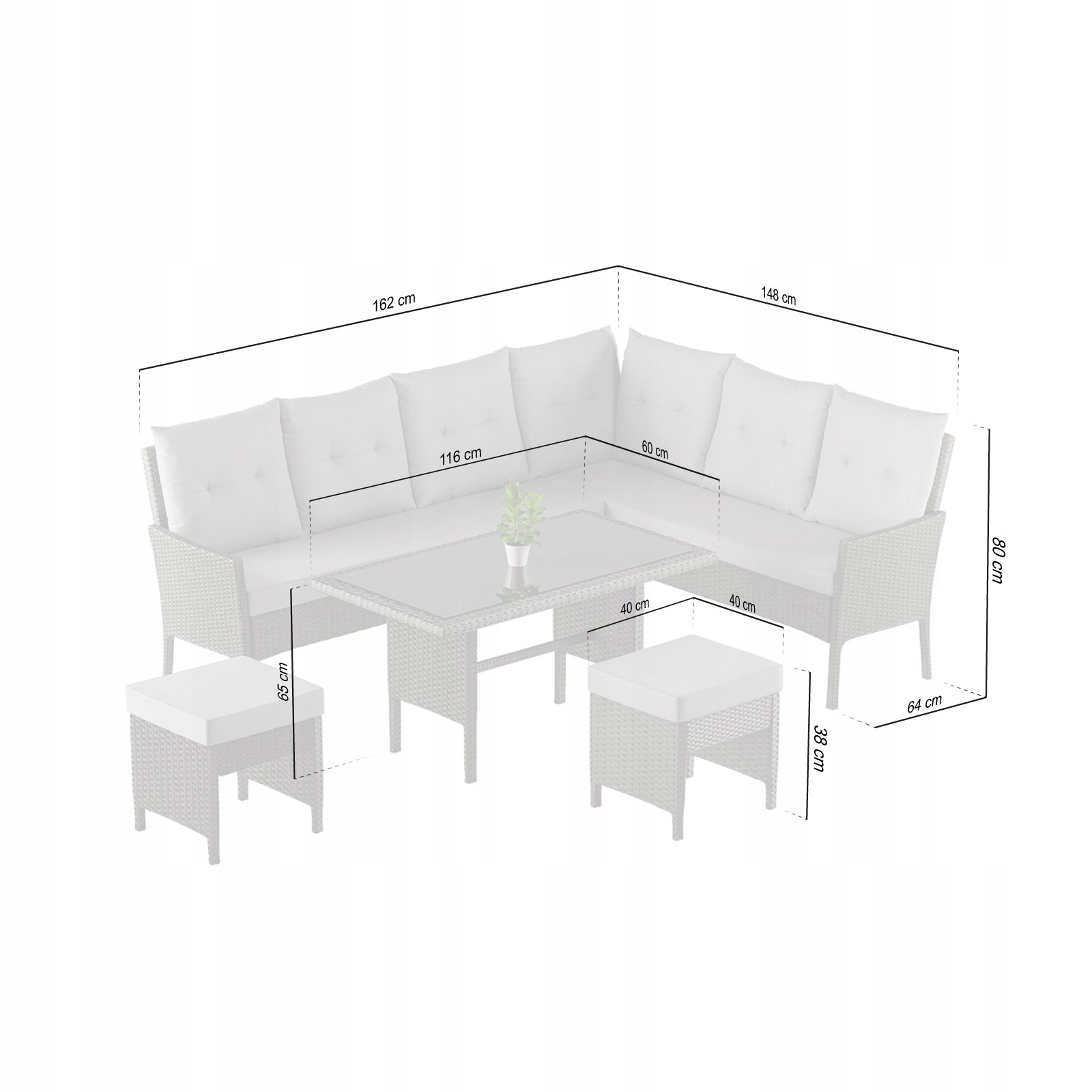 - 2 пуфа/пуфики: 40 × 40 × 38 см