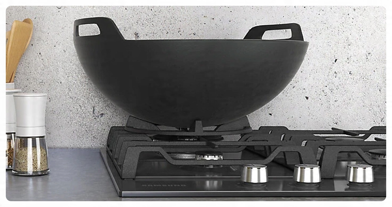 Нагревательная плита Samsung оснащена специально разработанной насадкой «вок», которая повышает эффективность и безопасность использования сковороды-вок.