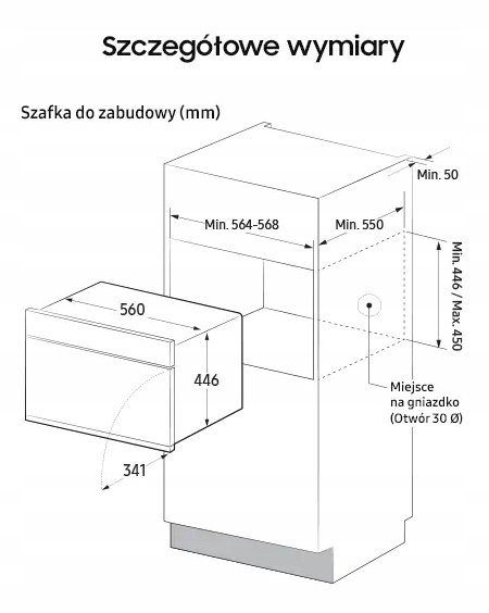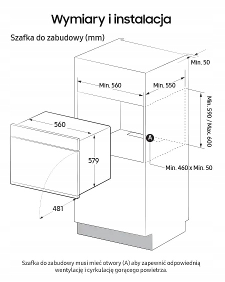 - Размеры выреза (Ш x В x Г): 560 x 446 x 549 мм.