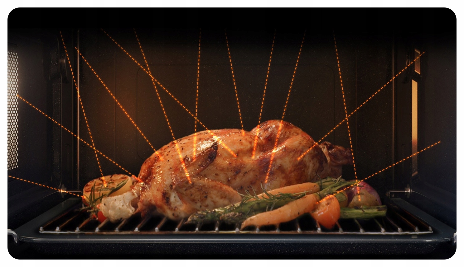 Благодаря уникальному разделителю Dual Cook вы можете разделить пространство духовки на две камеры и выпекать два блюда одновременно. в разных режимах и температурах, без проникновения запахов. Вы также можете сэкономить силы и время, выпекая только в одной камере.