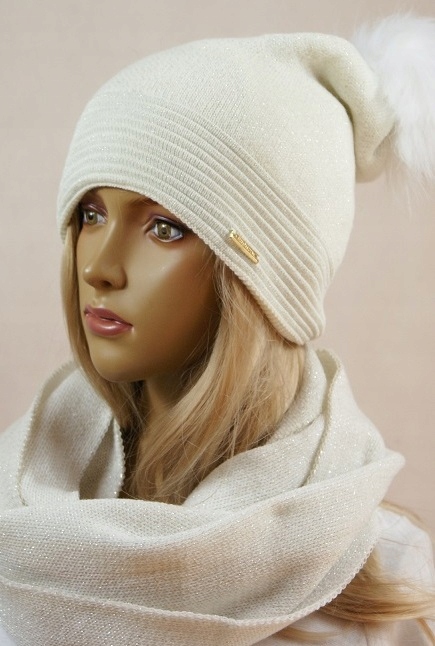 КОМПЛЕКТ: шапка + шарф-камин помпон №09