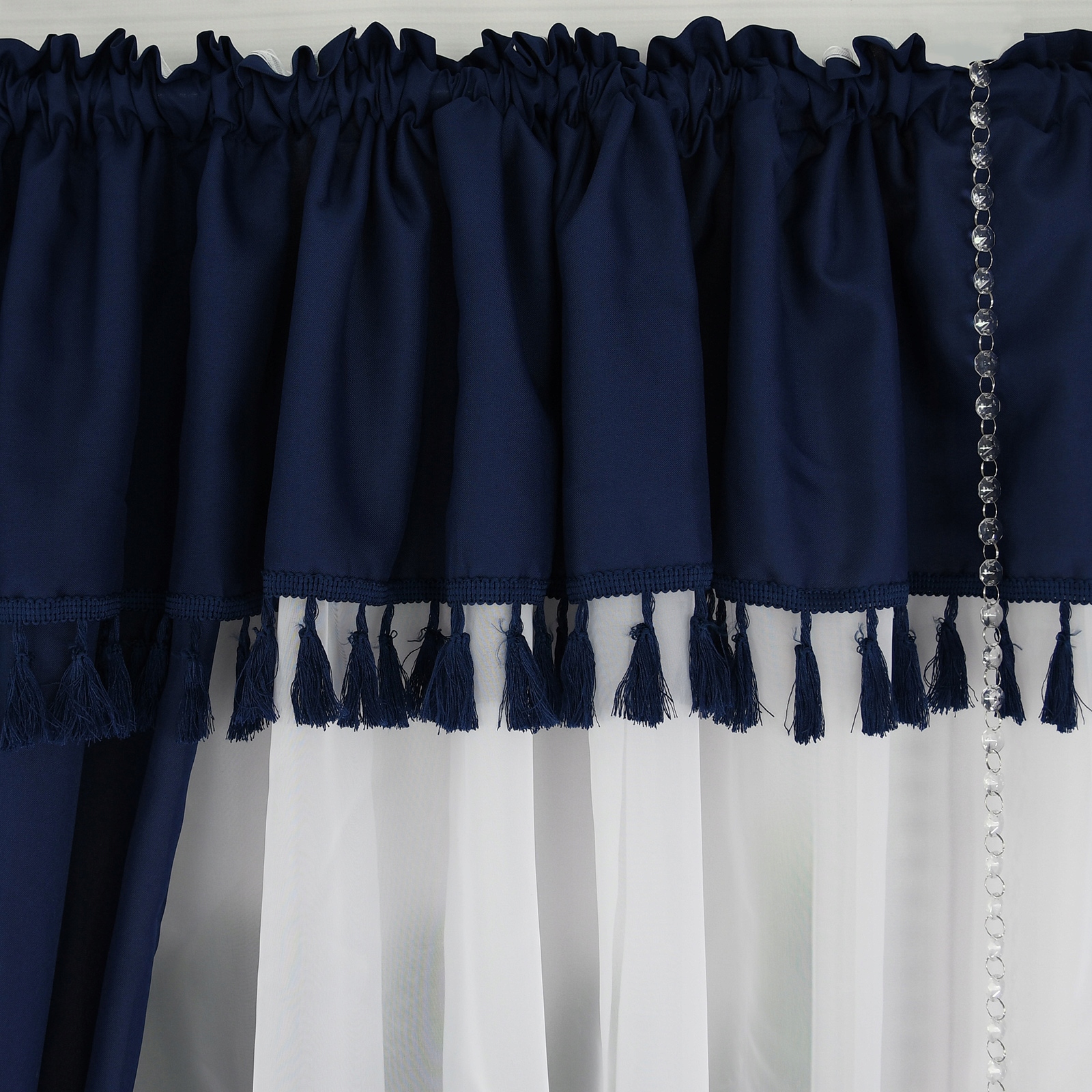 Шторы из портьерного материала, верхний ламбрекен украшен кистями (бахромой) в цвет штор.