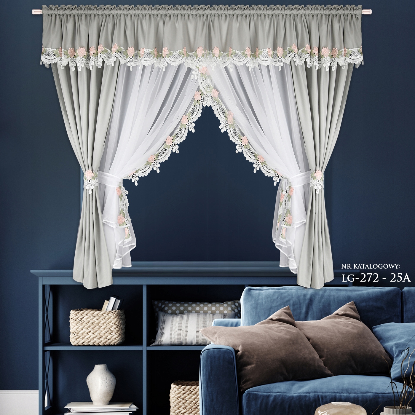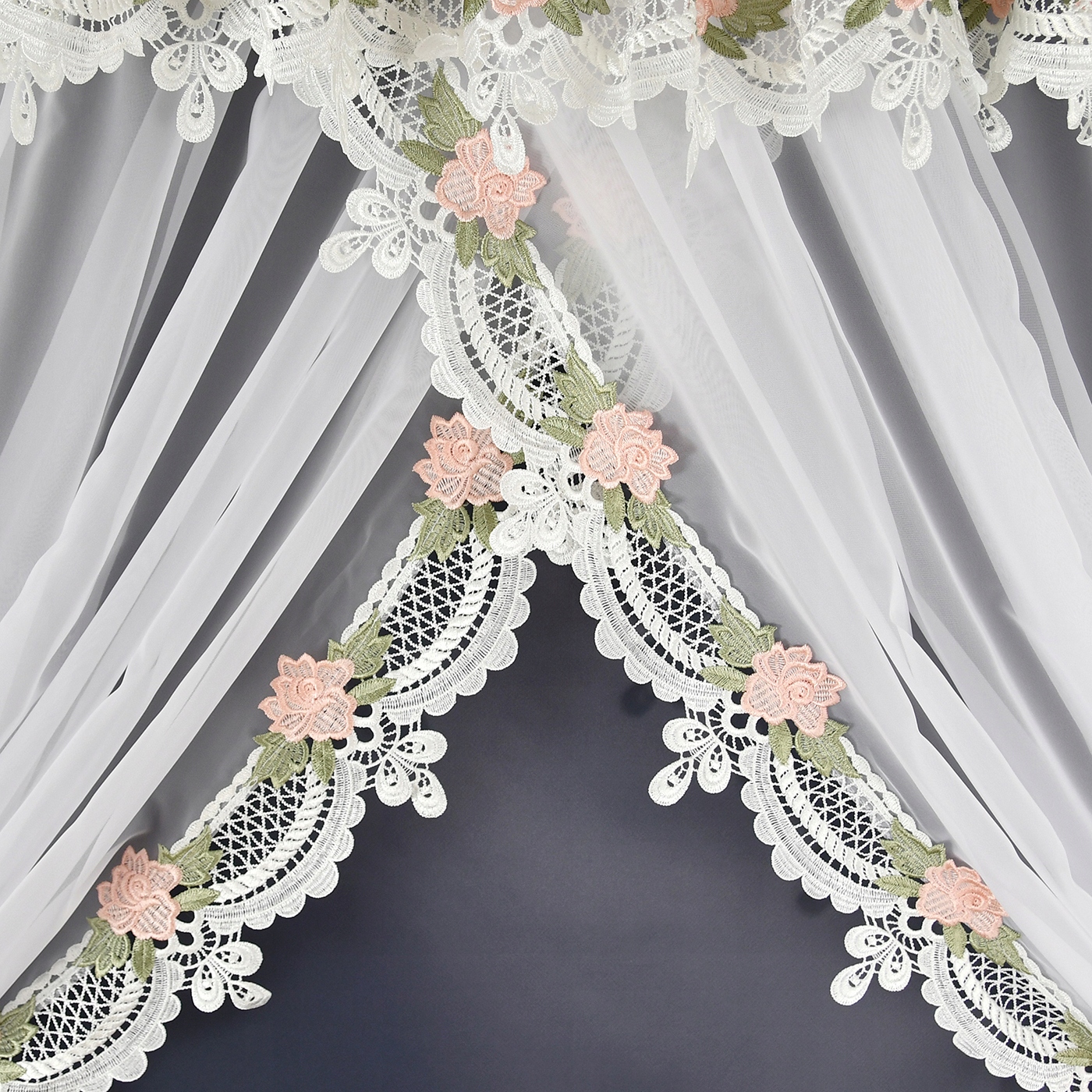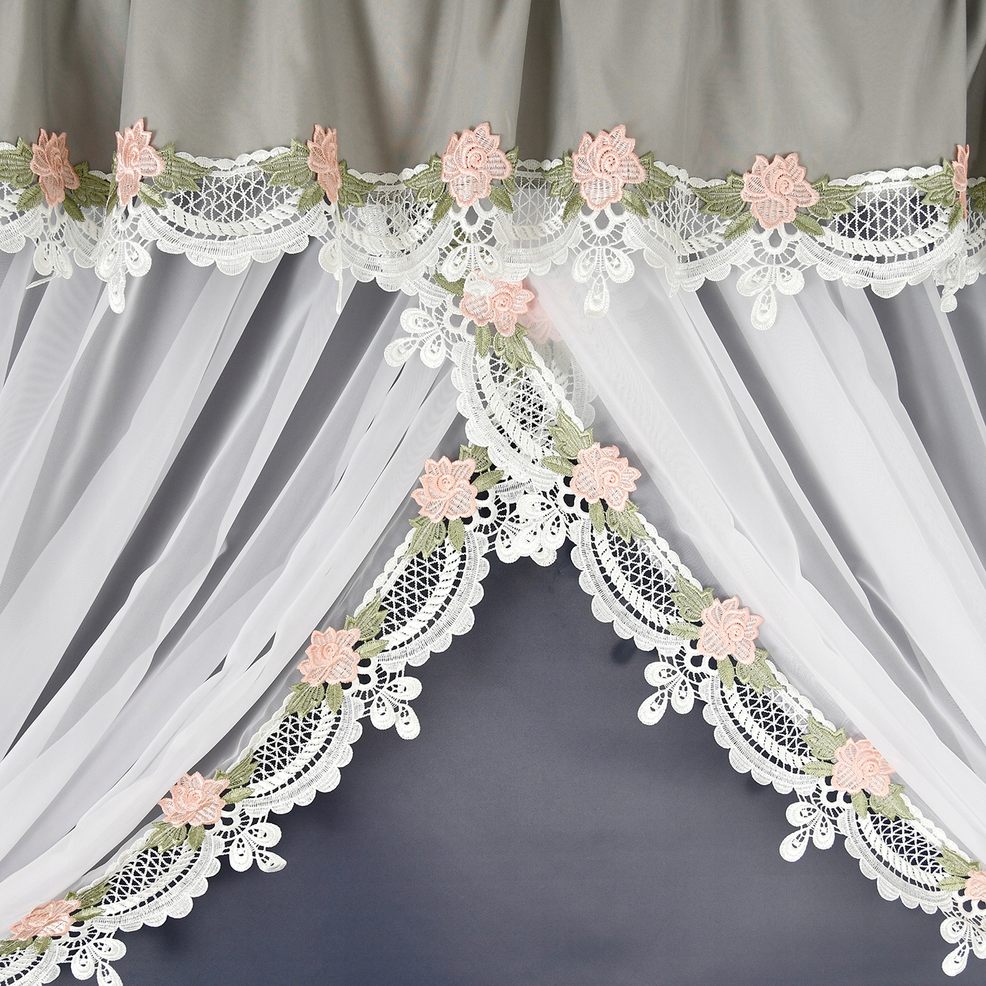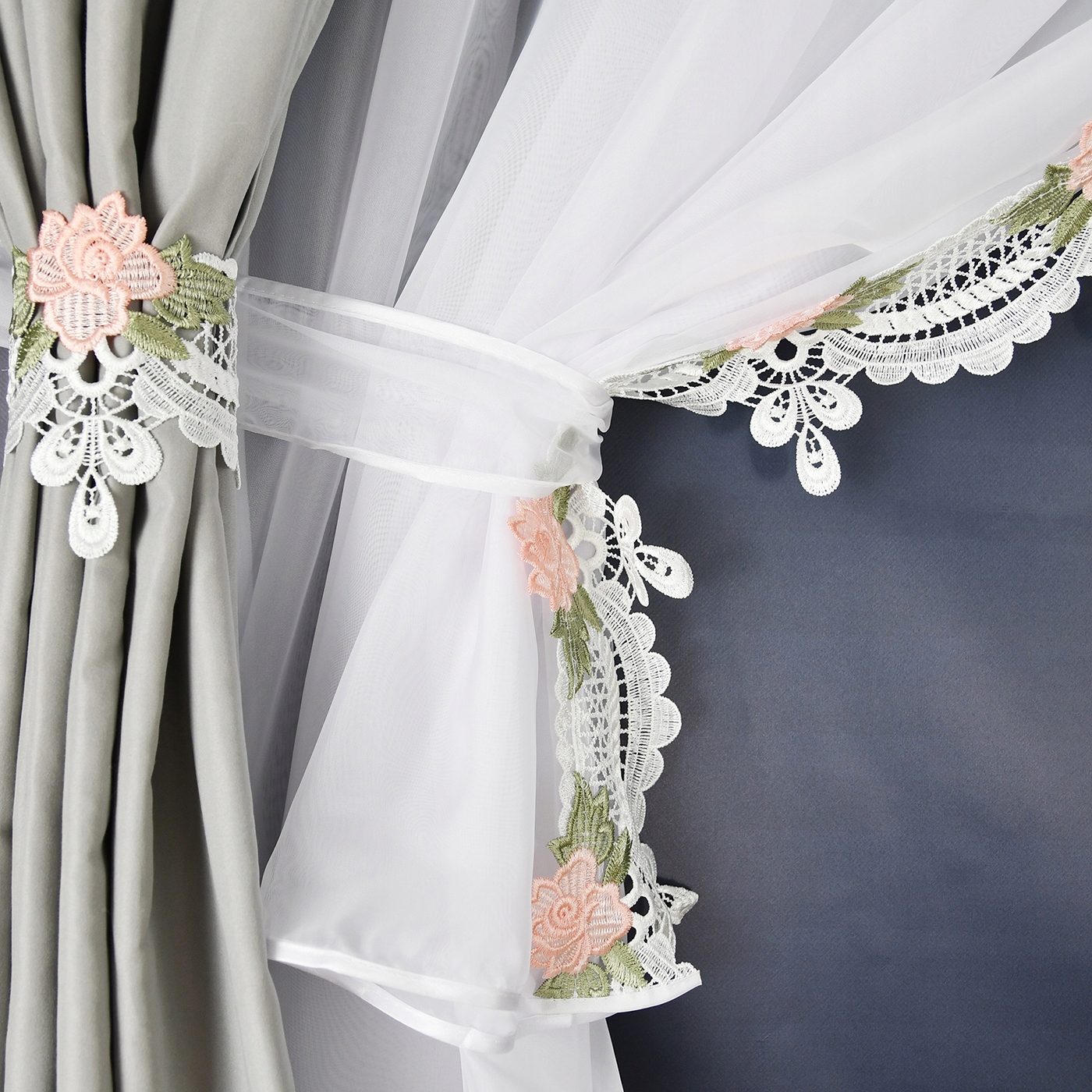Шторы пришиты на сборной ленте, что позволяет ткани идеально расположиться на полотне. карниз для штор, обеспечивающий ровные складки и добавляющие гармонию пространству. Главный декоративный элемент – тонкое гипюровое кружево, которое деликатно украшает и штору, и ламбрекен, придавая всему комплекту легкость и романтичность. Эта замысловатая деталь притягивает взгляд, подчеркивая классический характер штор и привнося в интерьер нотку роскоши.