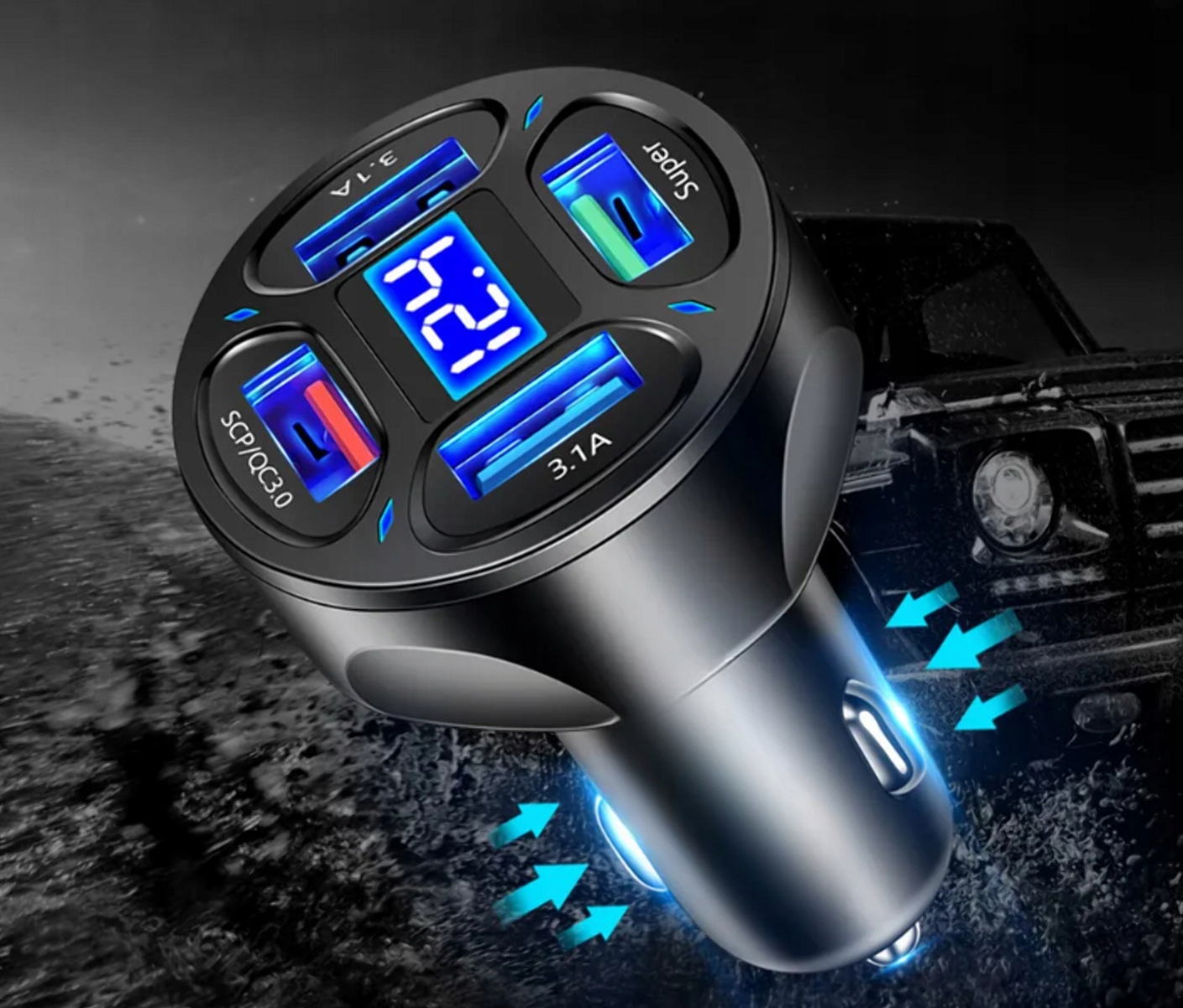 КОМПЛЕКТ БЫСТРОГО АВТОМОБИЛЬНОГО ЗАРЯДНОГО УСТРОЙСТВА 4XUSB 7A + КАБЕЛЬ 3 В 1