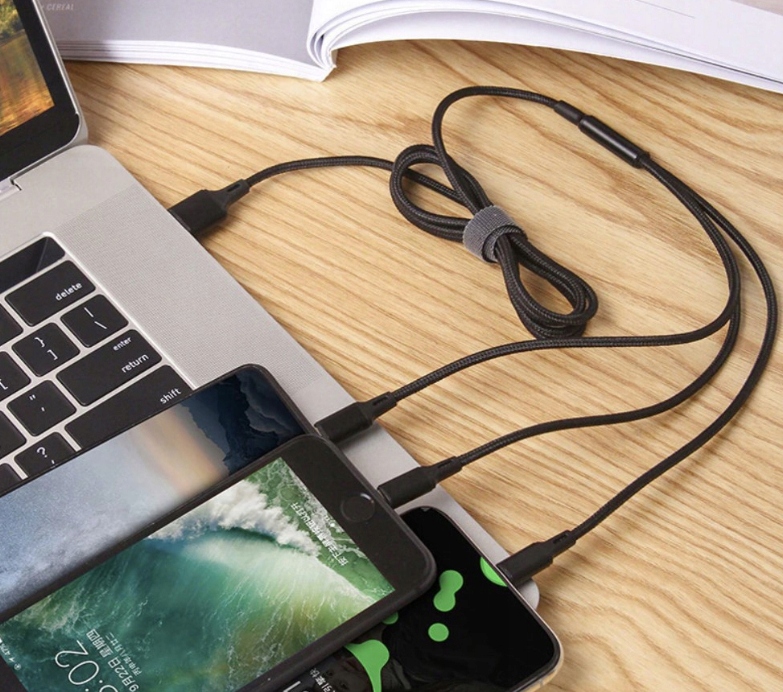 Кабель для зарядки телефона Версия 3-в-1, имеет 3 входа для телефонов — Lightning, Micro-USB и USB Type-C. Очень универсальный кабель подойдет в любой сложной ситуации . Кружевная тесьма и металлические наконечники обеспечивают долговечность использования.