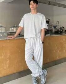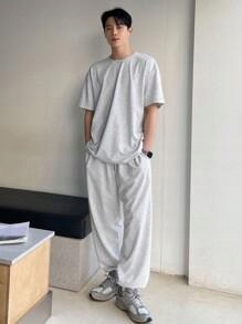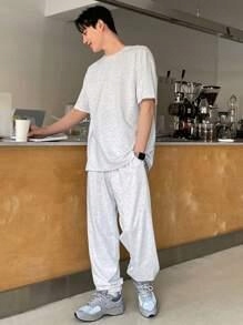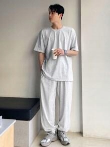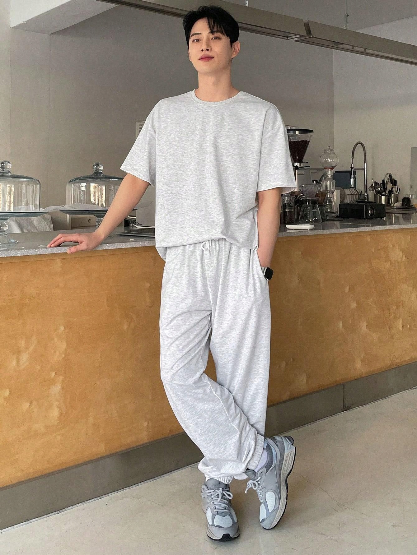 КОМПЛЕКТ СЕРОЙ ФУТБОЛКИ И ДЛИННЫХ СВОБОДНЫХ СПОРТИВНЫХ БРЮК DAZY M