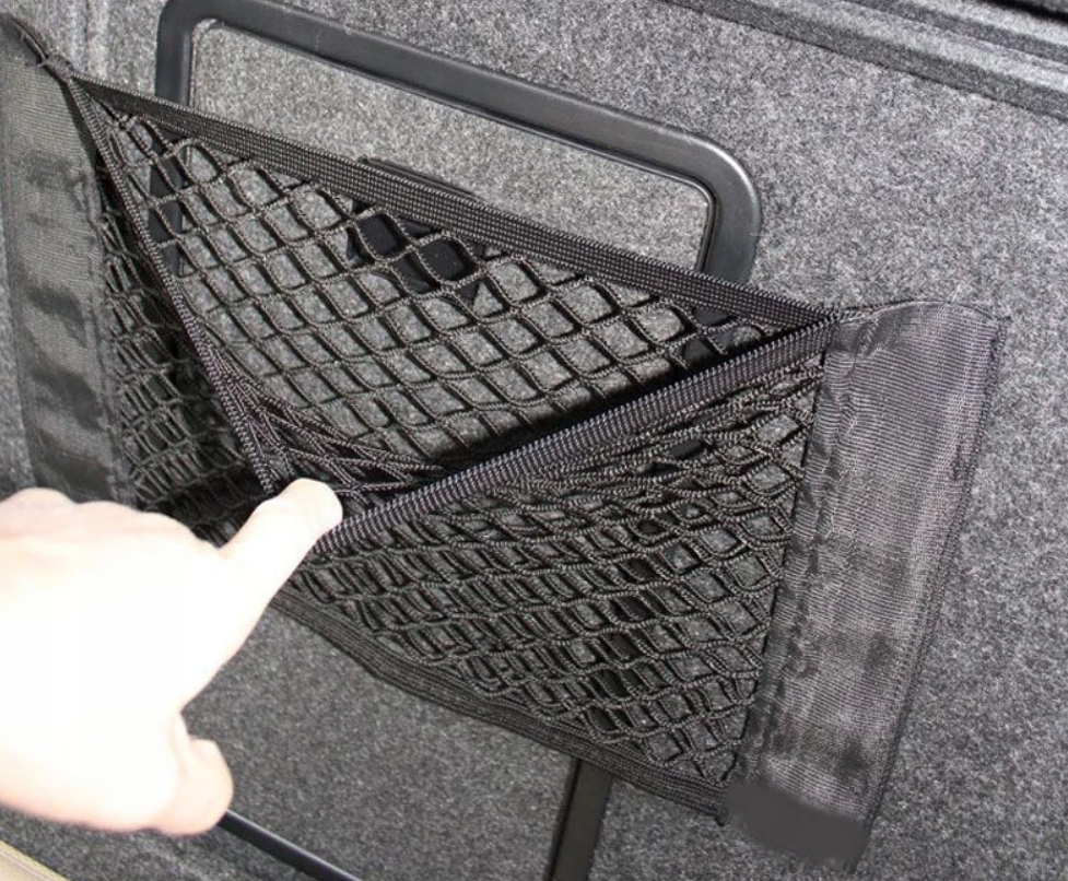 Сетка – идеальное решение, если у вас нет отделений для хранения автомобильных аксессуаров. Благодаря небольшому размеру его можно приклеить во многих местах (багажник, за спинкой сиденья, под колесной аркой, на бархатных ковриках)