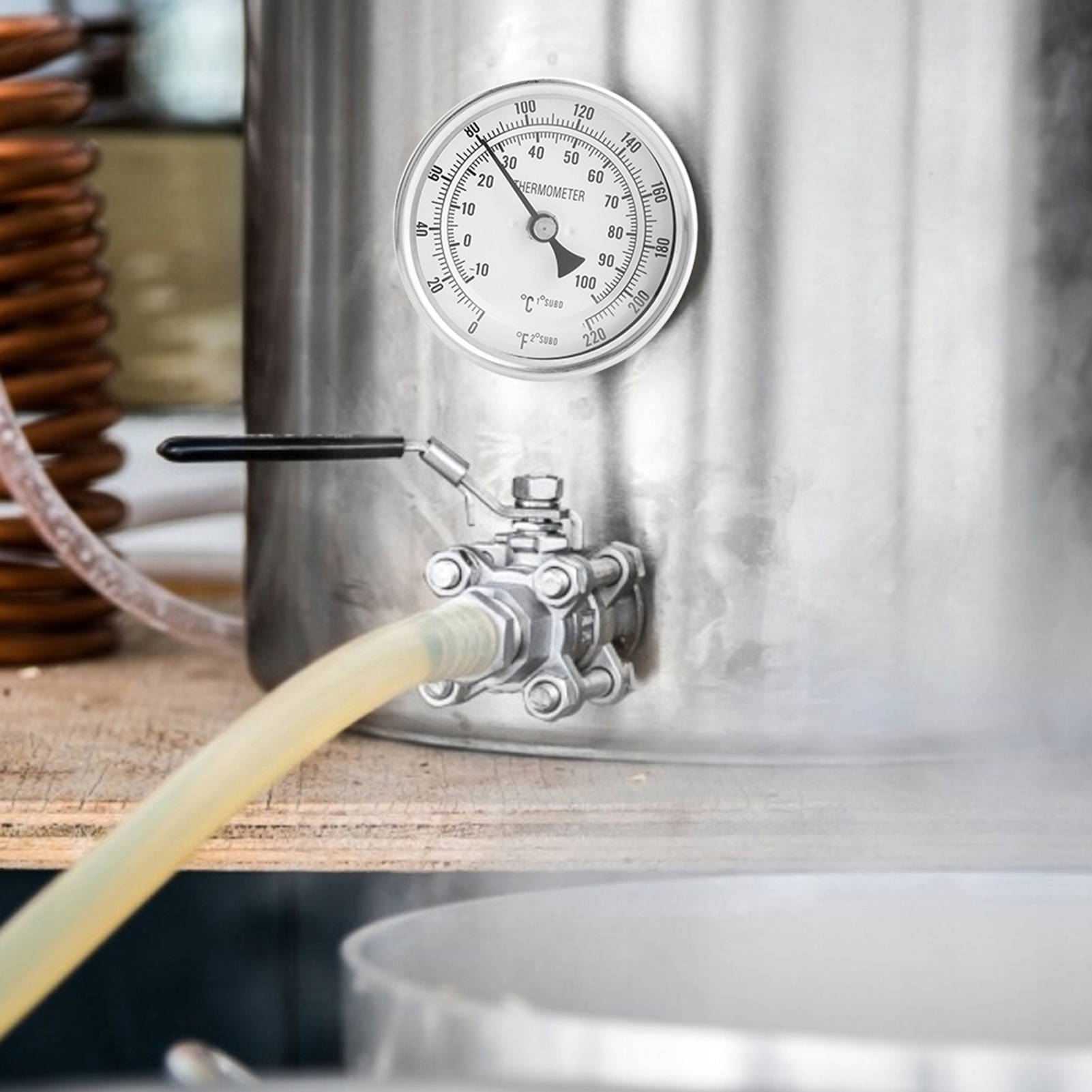 5. 5. Уникальная конструкция резьбы 1/2 NPT: термометр с наружной резьбой 1/2 NPT можно установить на резьбовое соединение 1/2. Этот биметаллический термометр идеально подходит для домашних пивоваренных котлов, стандартных кастрюль, бочек, ферментеров и т. д.