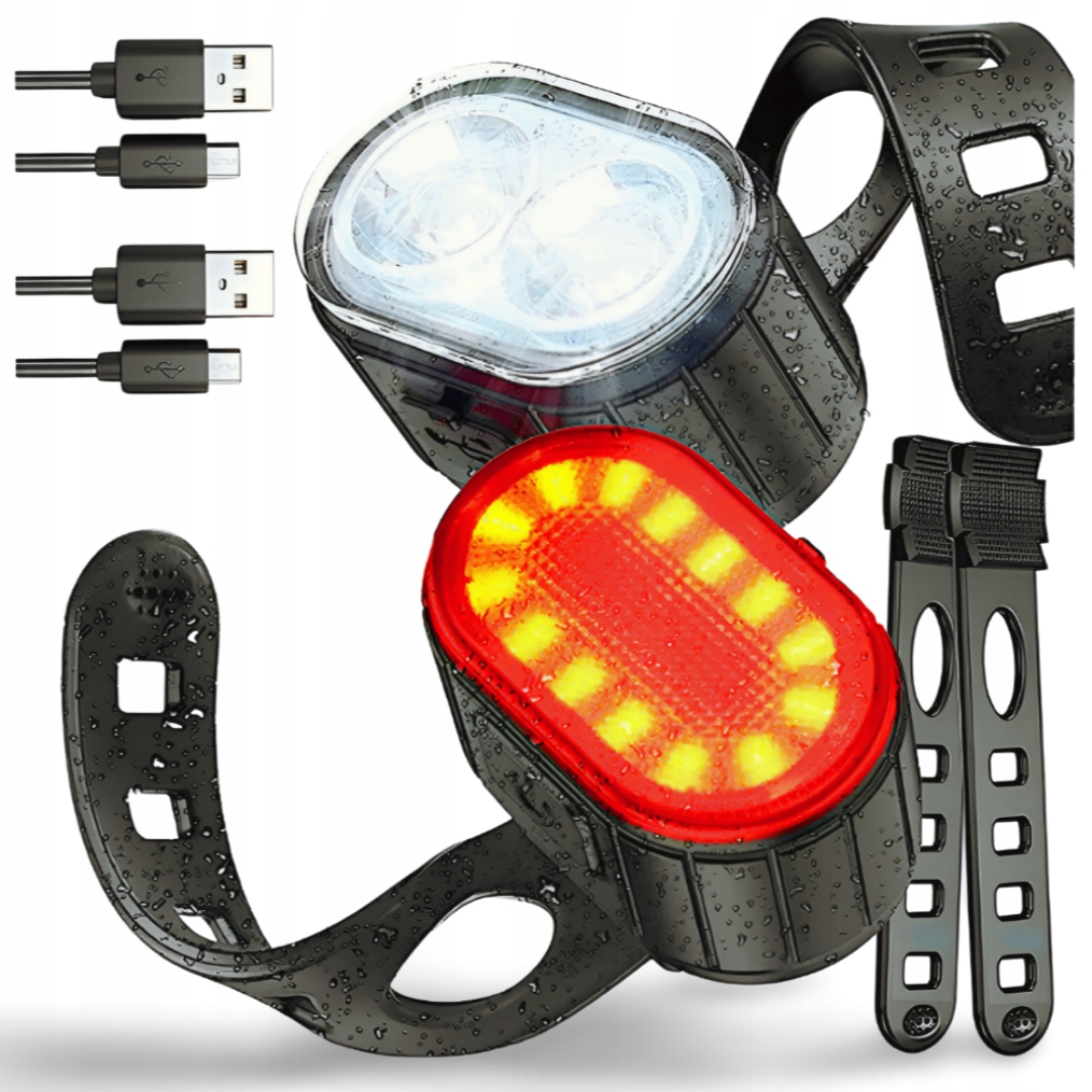Комплект светодиодных фонарей для велосипеда ПЕРЕДНИЙ ЗАДНИЙ ДЛЯ АККУМУЛЯТОРА НА РУЛЕ