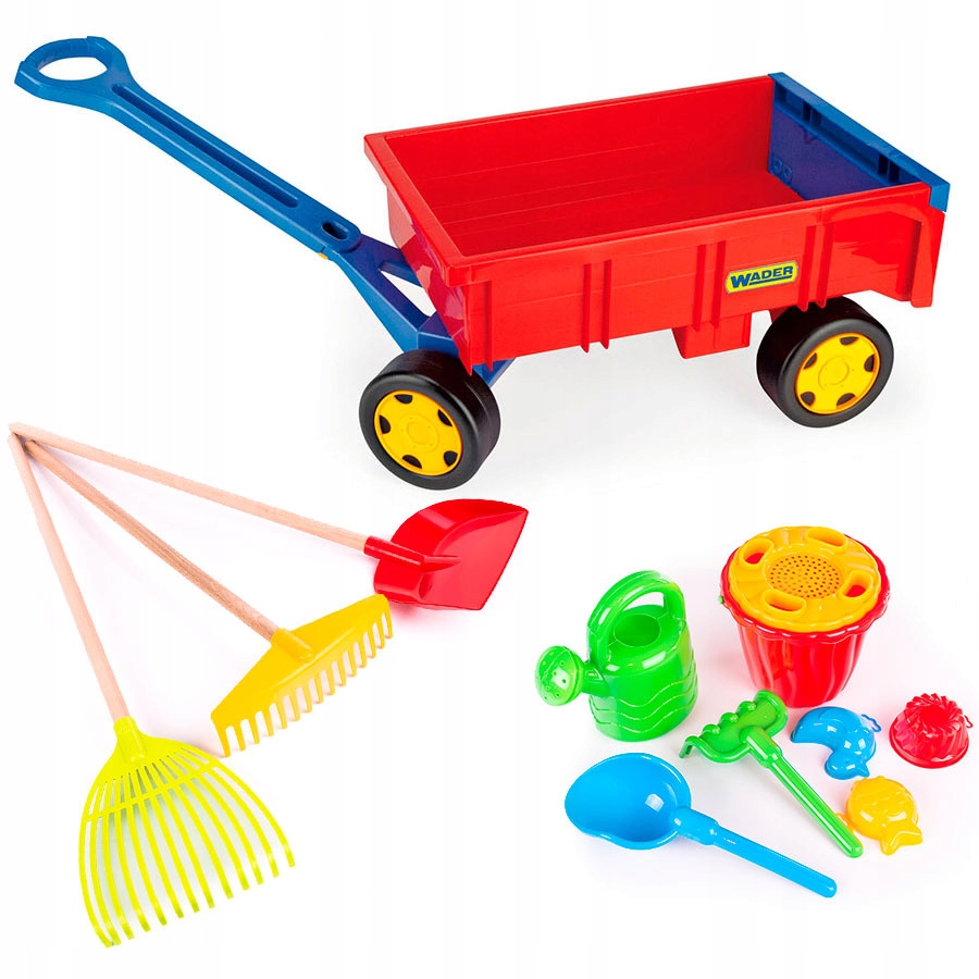 Тележка WADER + Набор инструментов: грабли, лопата, грабли для листьев + Набор песка с ведром