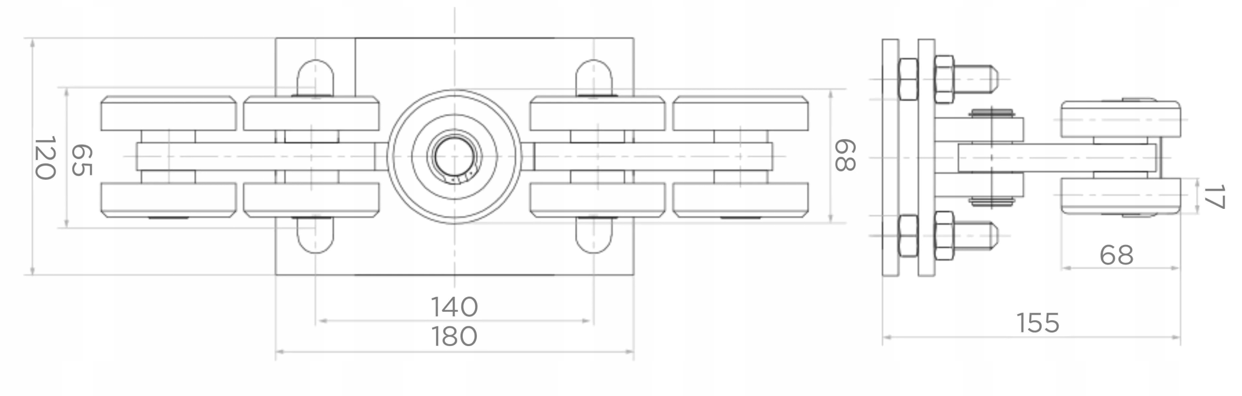 КОМПЛЕКТ ТЕЛЕЖЕК РАЗДВИЖНЫЕ ВОРОТА 9 РОЛИКОВ 80x80x5 S52